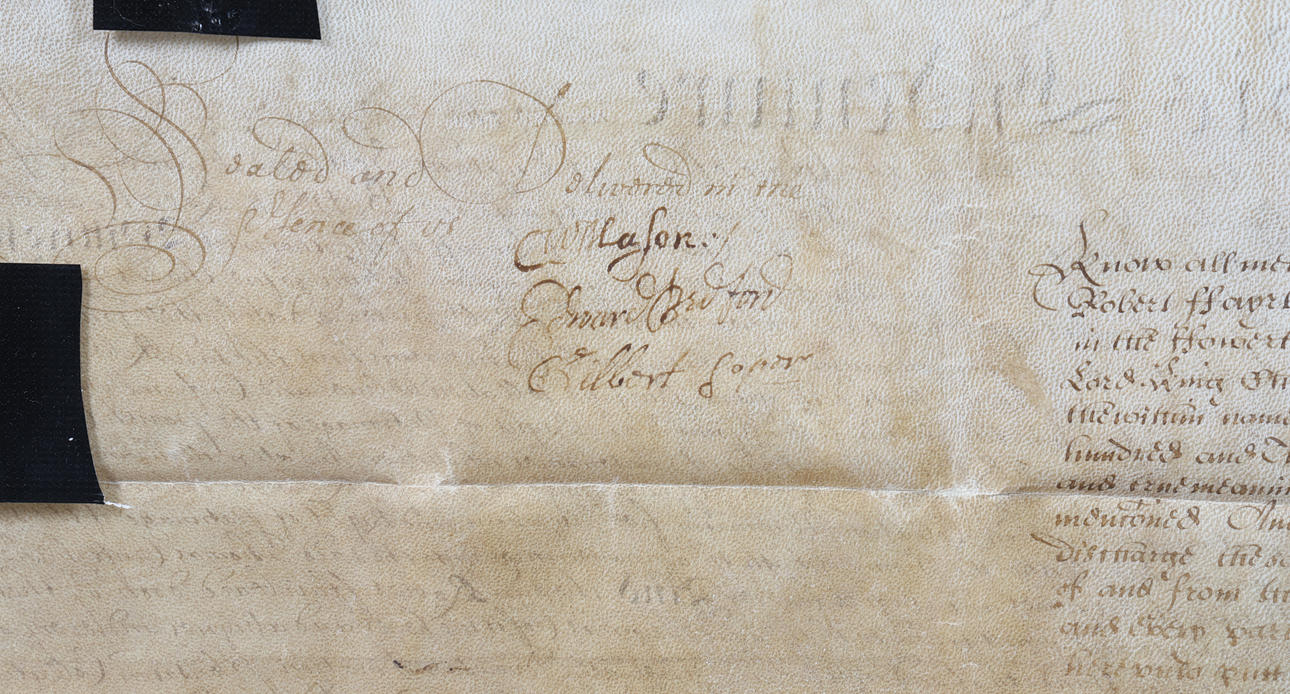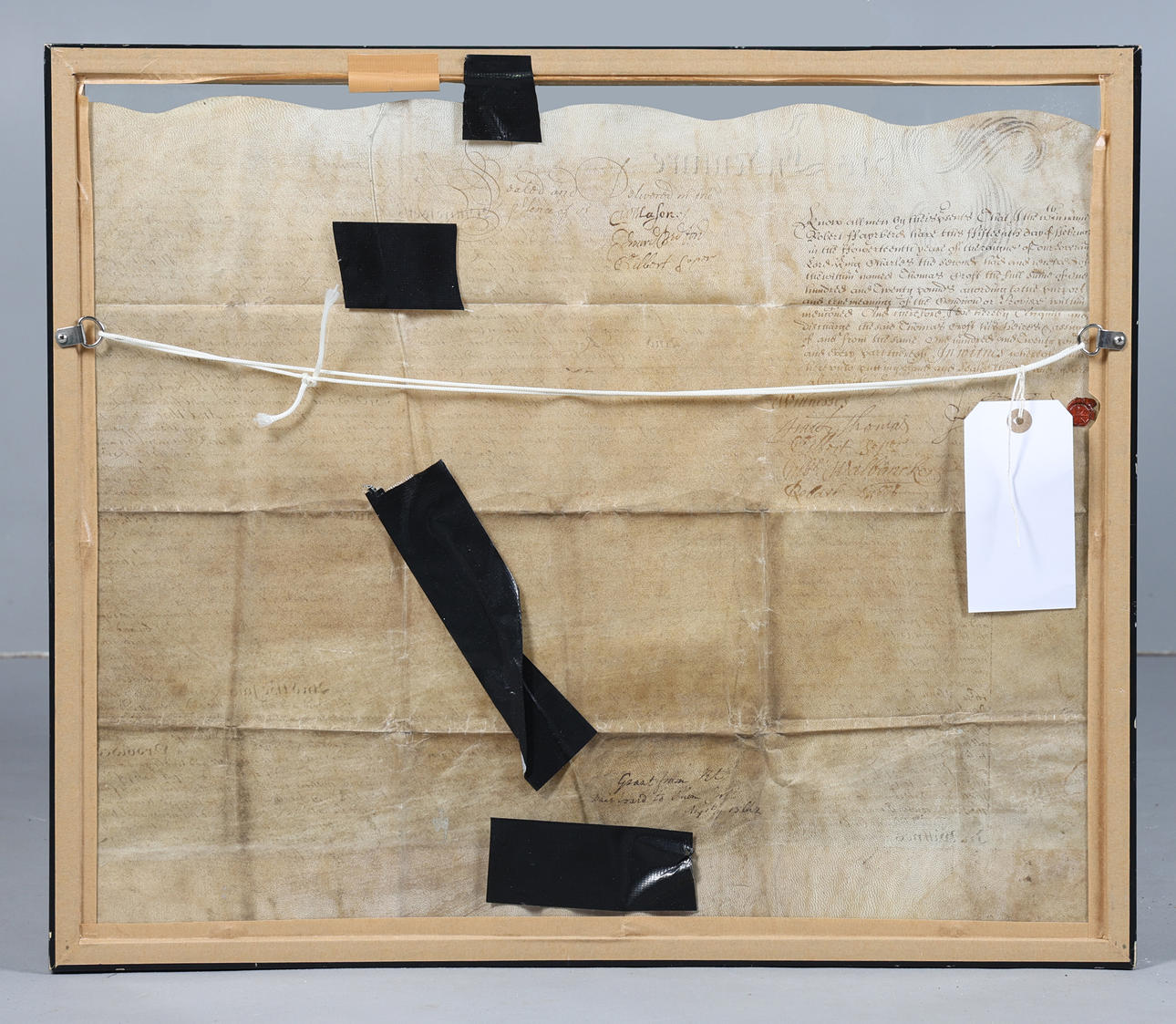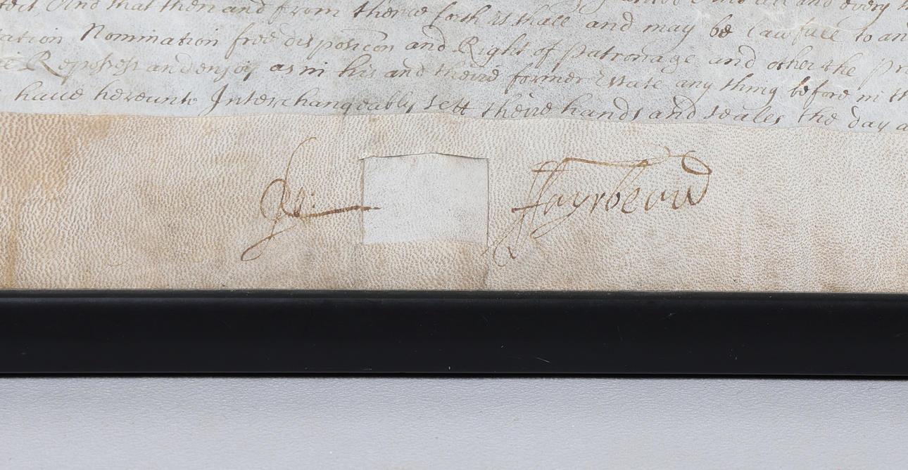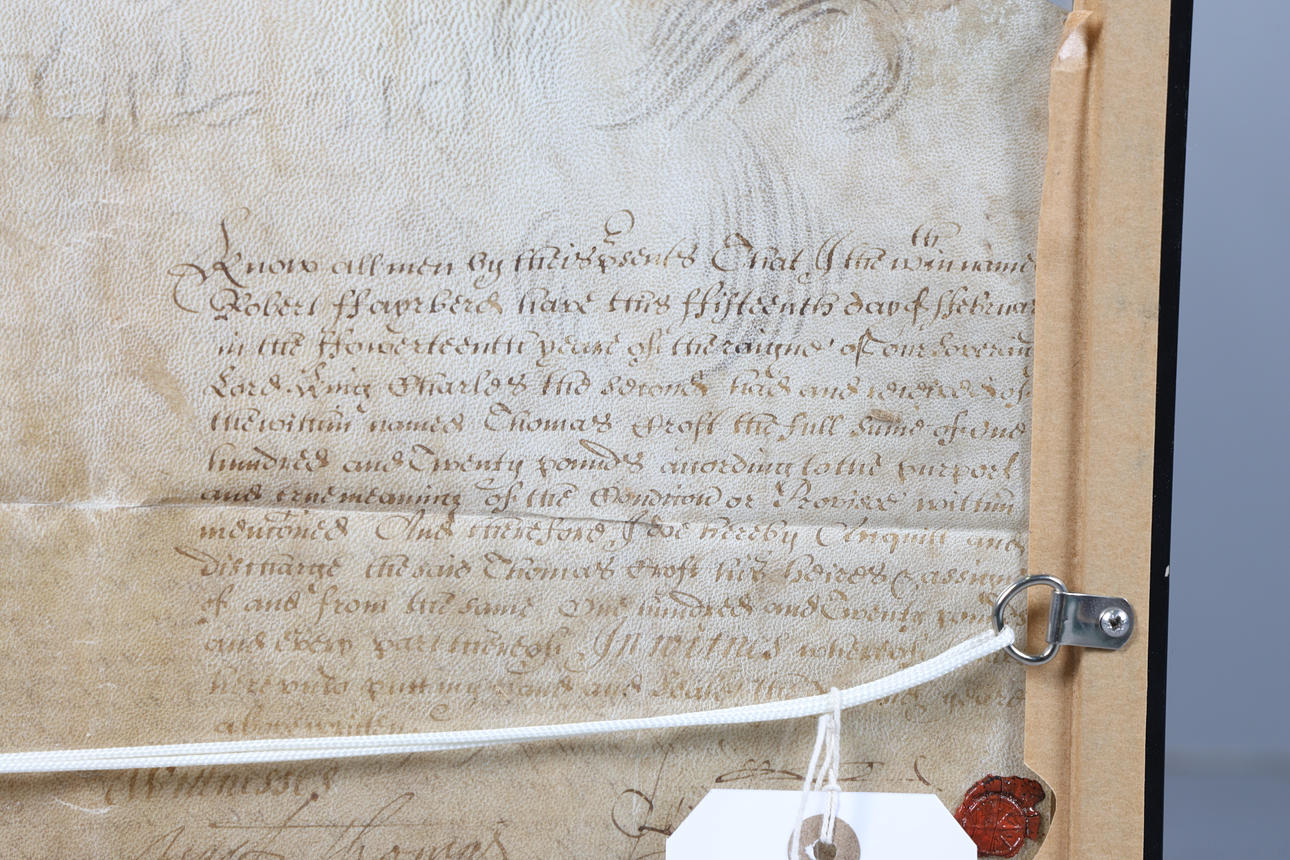 Datiert 1661, das Dokument zwischen Robert Fair???? von Middlesex und Thomas Croft, offenbar eine Zahlung von zweihundert Pfund. das Dokument gerahmt und glasiert, 61 cm breit, 52 cm hoch inklusive Rahmen.