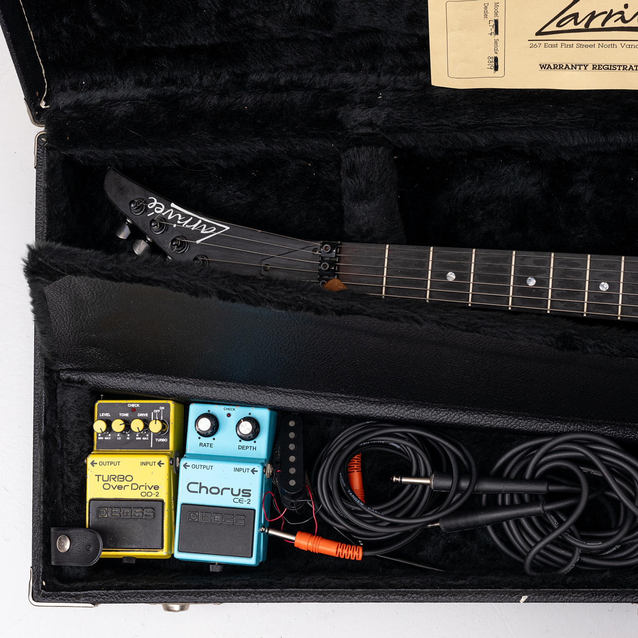 Eine E-Gitarre, Larrivée, Modell LT-4, Kanada, um 1990, mit Zubehör.