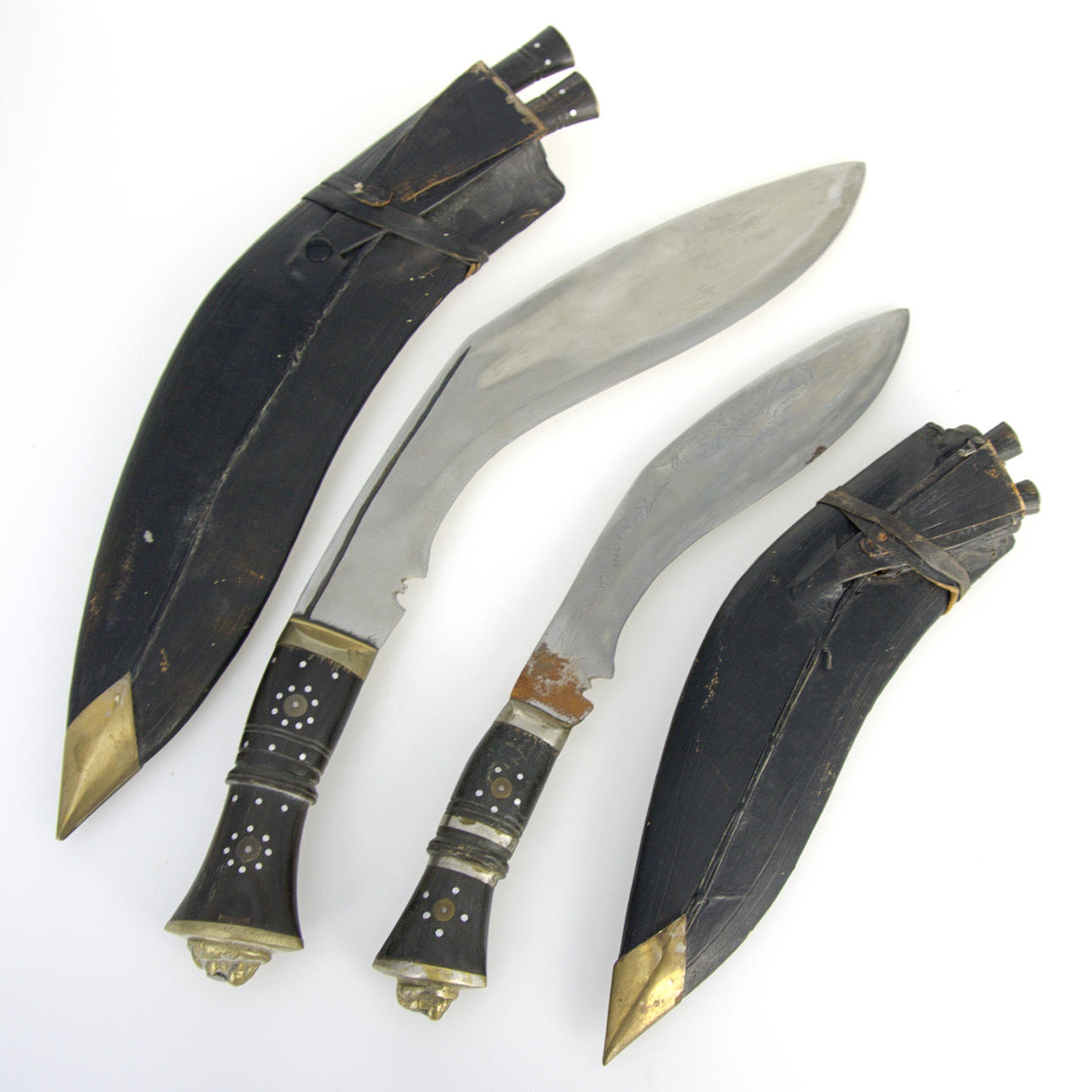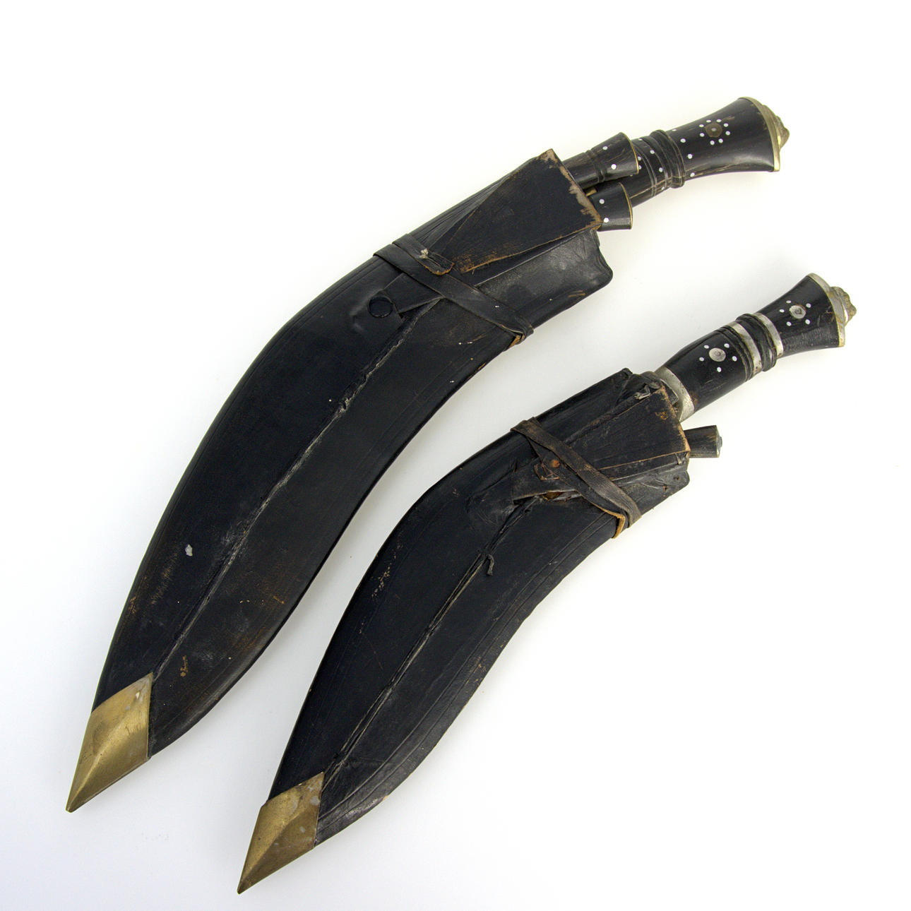 4393039. MESSER, 2 Stück, Gurke, Leder, Stahl, Messing, orientalisch.