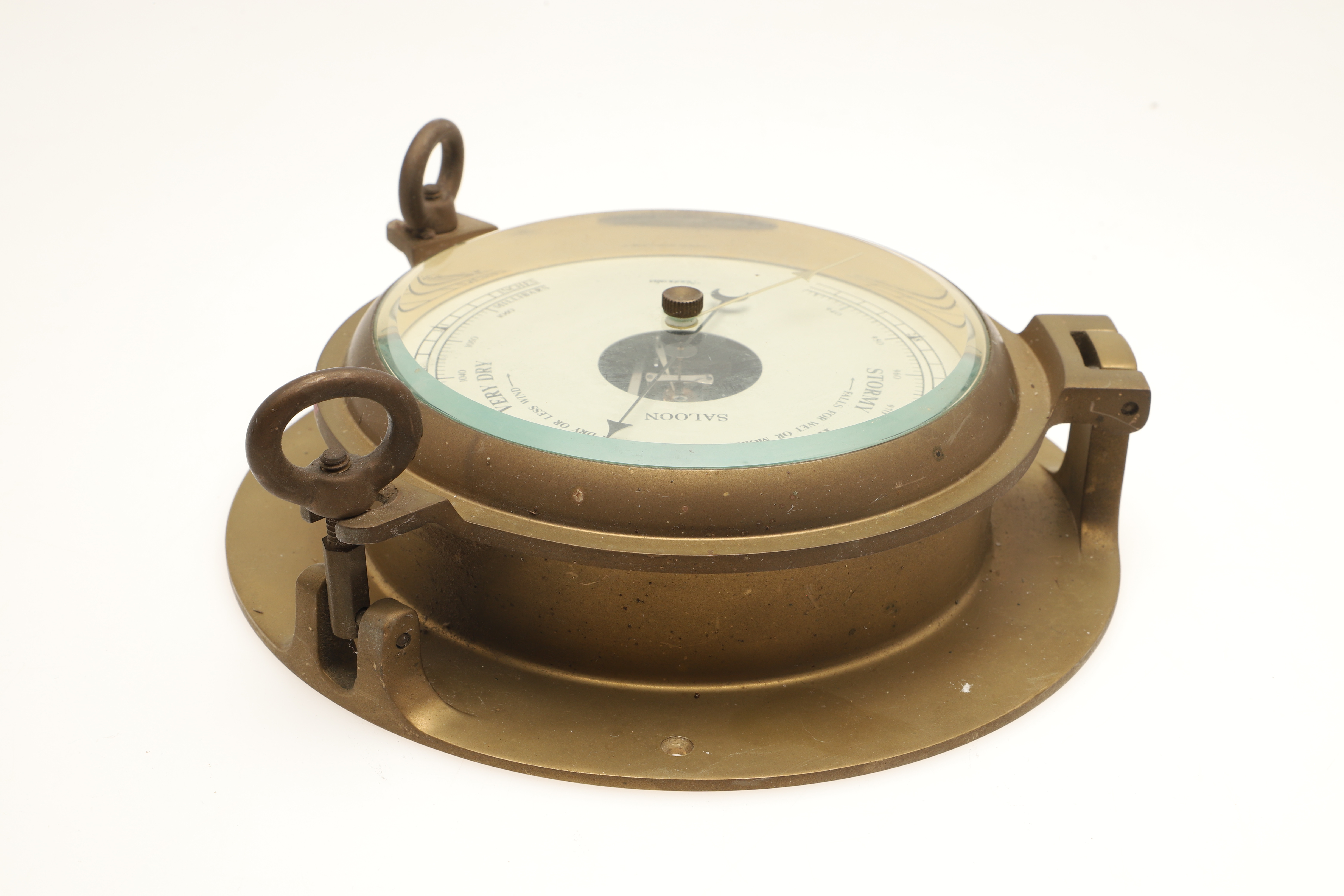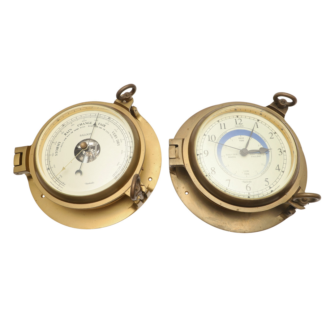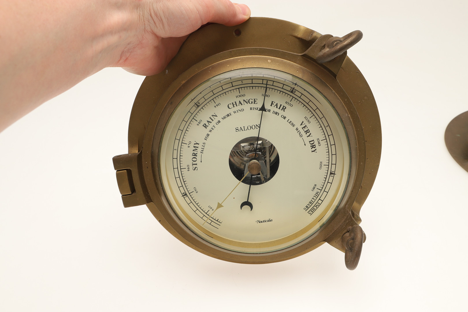 4393224. EIN SCHIFFSBAROMETER UND EINE UHR MIT MESSINGGEHÄUSE.