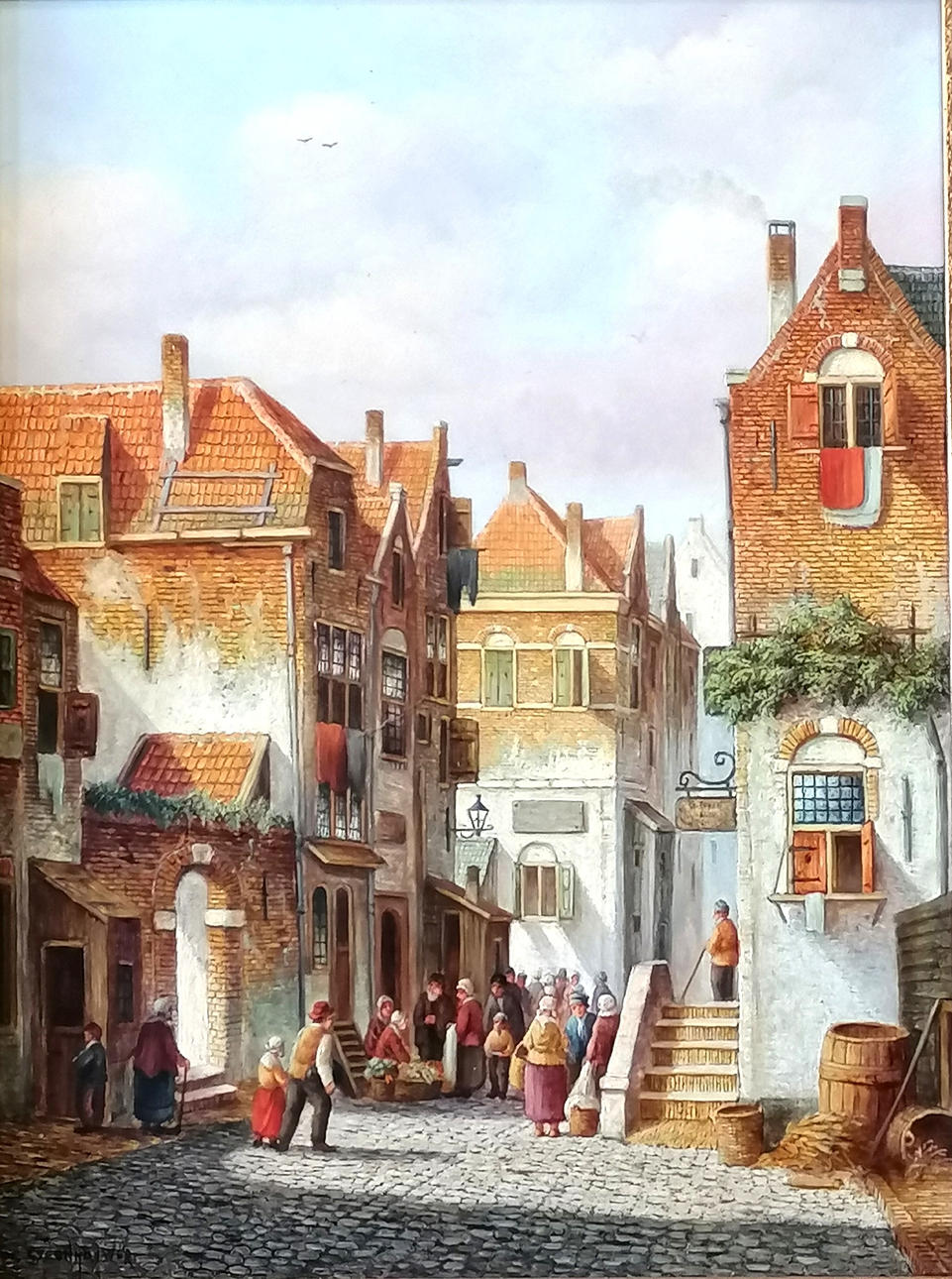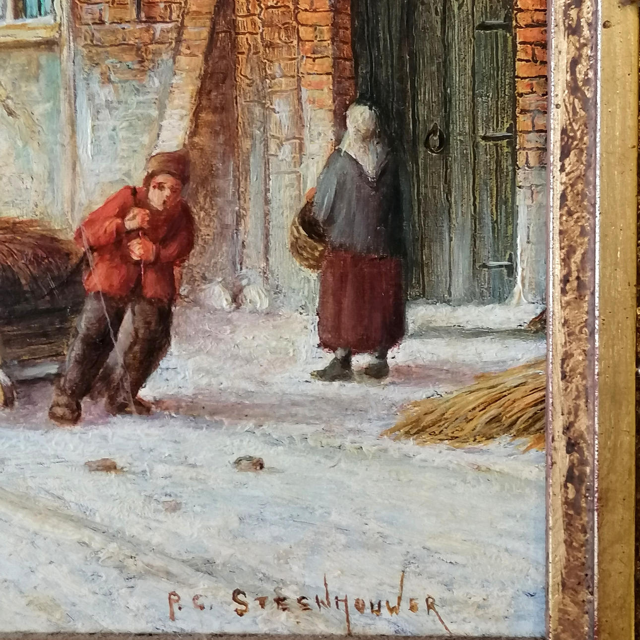 Pieter C Steenhouwer (1896-1972) Paar Ölgemälde mit holländischen Straßenszenen - vergoldeter Rahmen 59,5 cm x 49,5 cm.