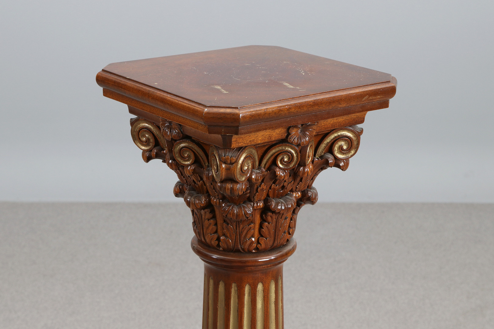 4395439. PODEST. Mahagoni mit Bronzierung, in Form einer korinthischen Säule, 20. Jahrhundert.