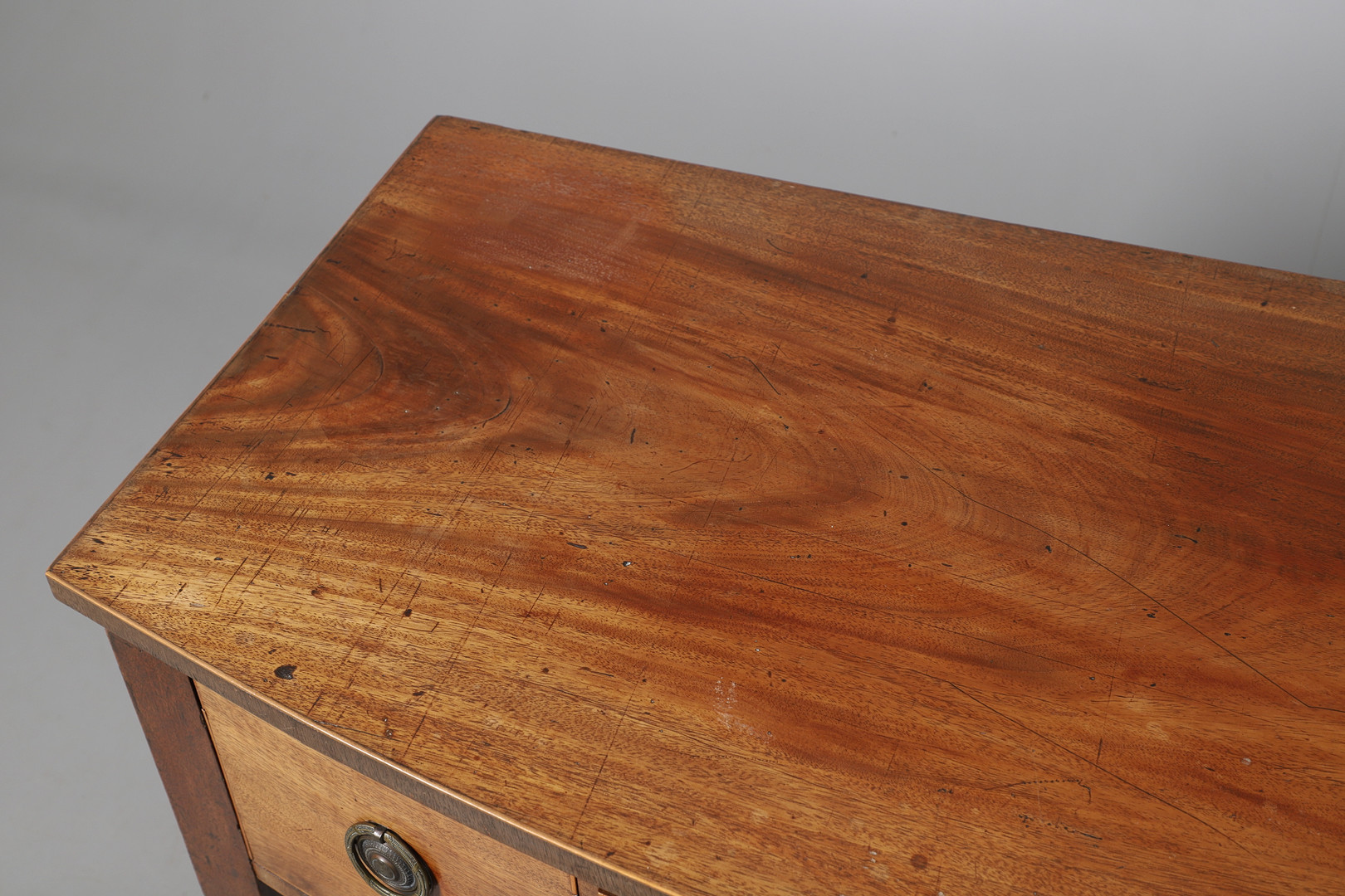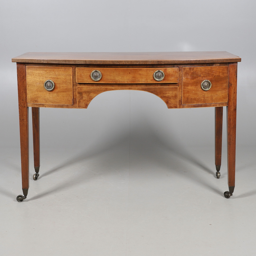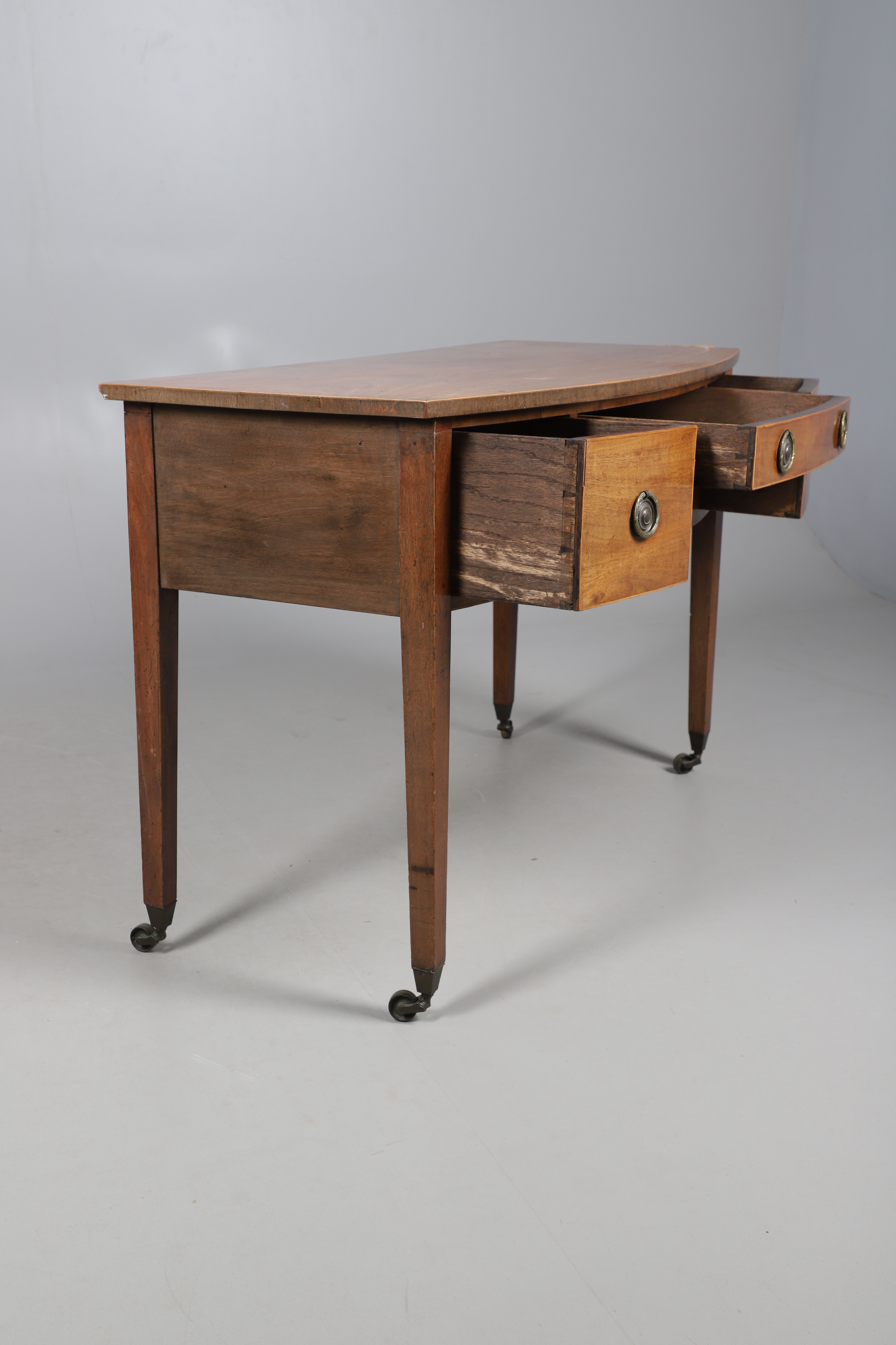 4396151. EIN SCHREIBTISCH MIT SCHLEIFENFRONT AUS MAHAGONI.