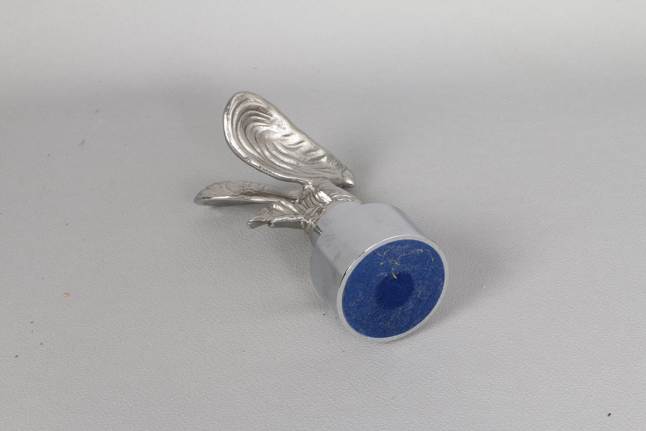 das verchromte Automaskottchen, 9,5 cm tief und 15,5 cm hoch.