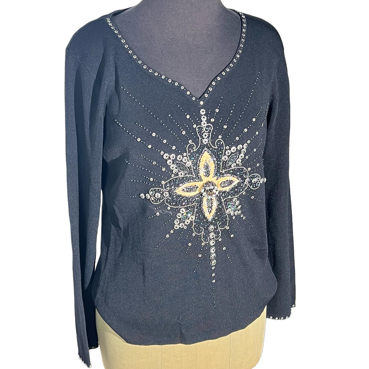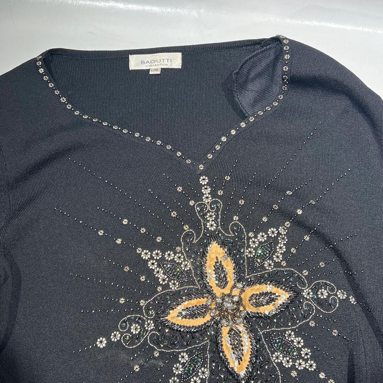 4396483. BAGUTTI-KOLLEKTION. Langarm-Pullover im indischen Stil mit Strasssteinen.