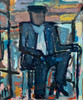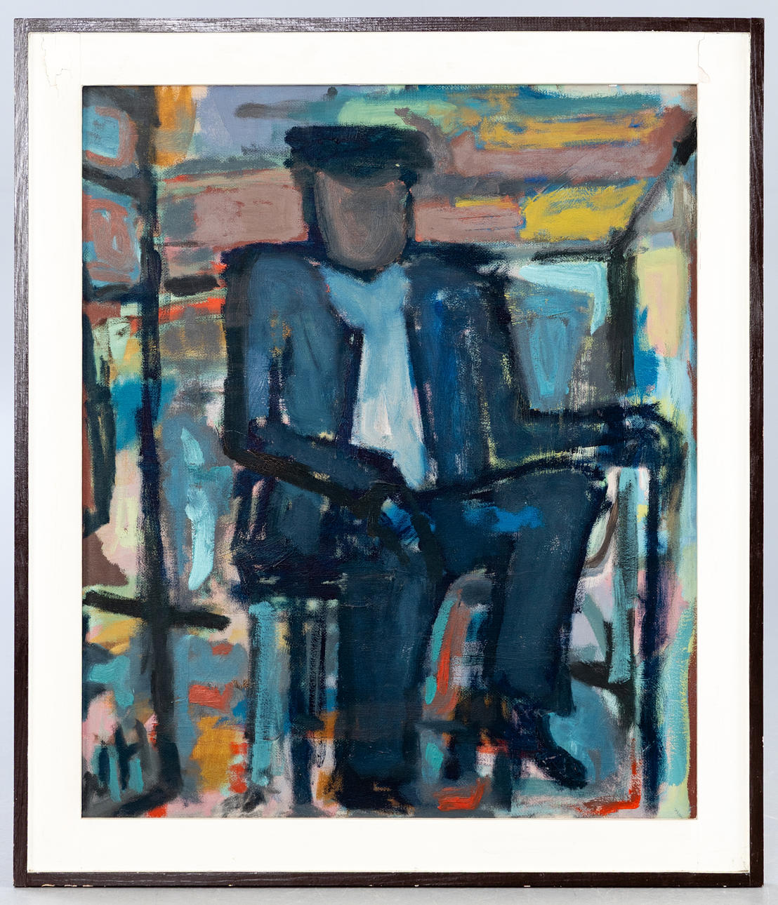 Wilhelm Hesselbach (1907-1960), Sitzende Figur, Öl auf Leinwand, auf Faserplatte aufgelegt, unten links monogrammiert "WH", ca. 80 x 67 cm, mit Rahmen ca. 92 x 79 cm.