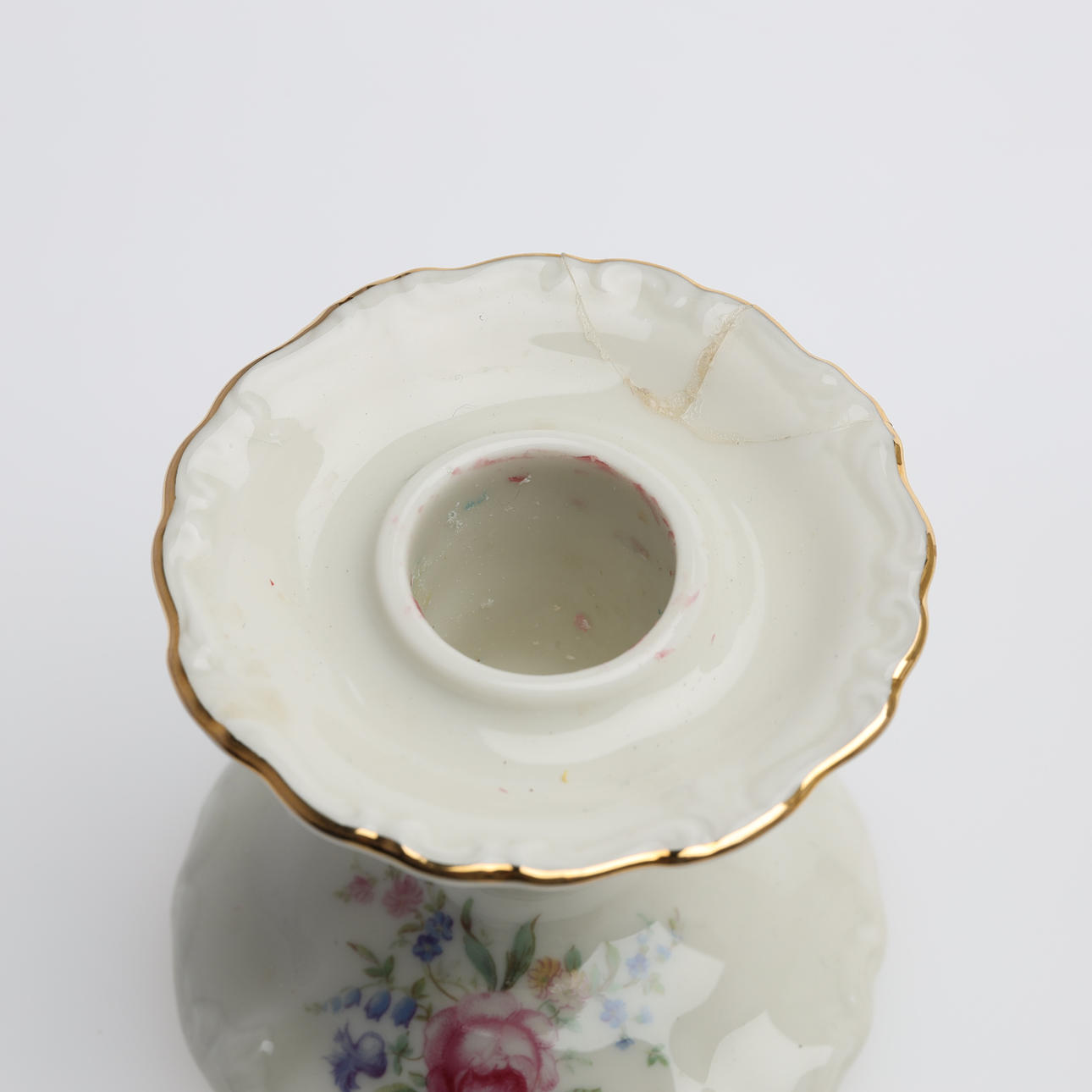 Verschleiß, Kerzenrückstände auf Kerzenständern, von denen einer repariert wurde.