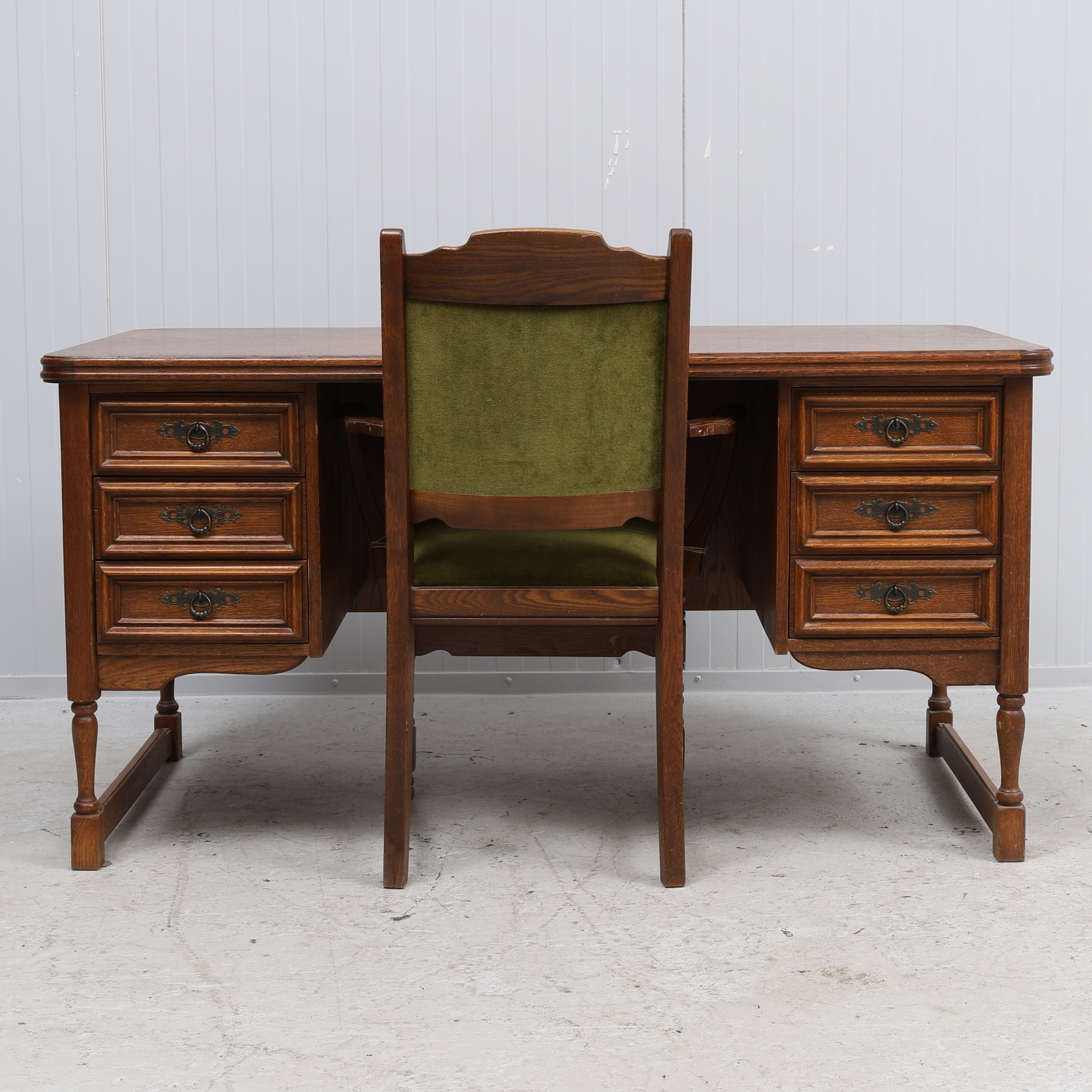 4399500. SCHREIBTISCH UND SESSEL, Eiche.