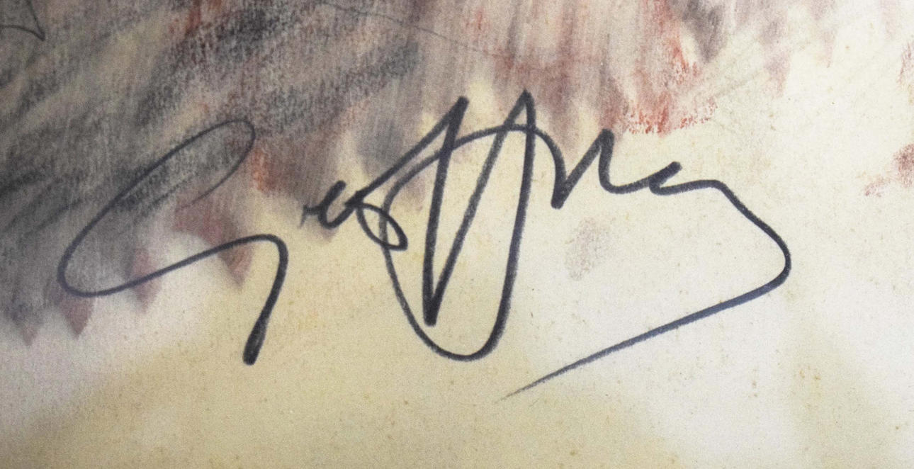 gerahmt, montiert und glasiert, unten rechts signiert, 69 cm H x 49 cm W.