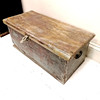 Antike indische Truhe aus Hartholz mit Spuren alter Lackierung, 79,5 cm B x 33 cm H x 37 cm T.