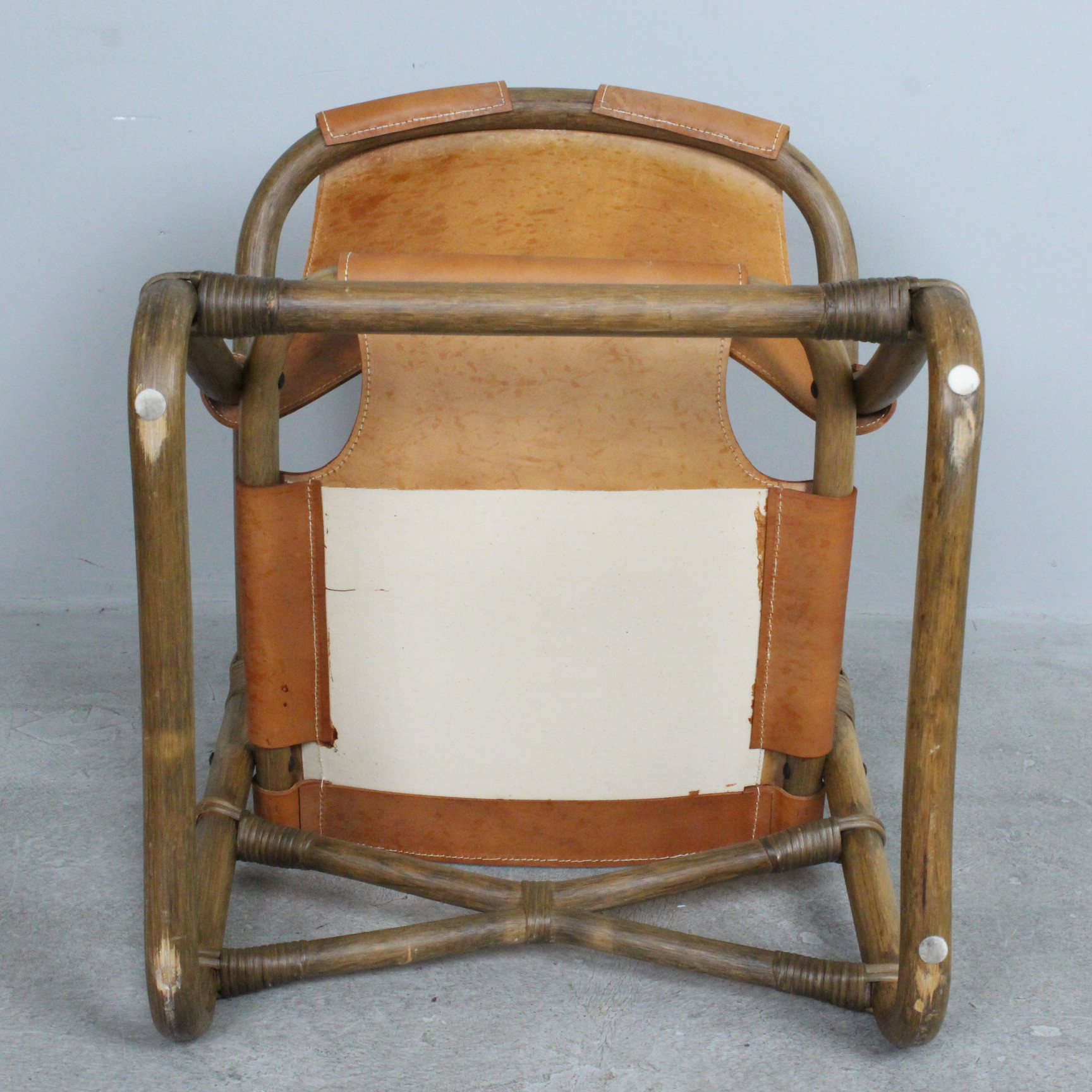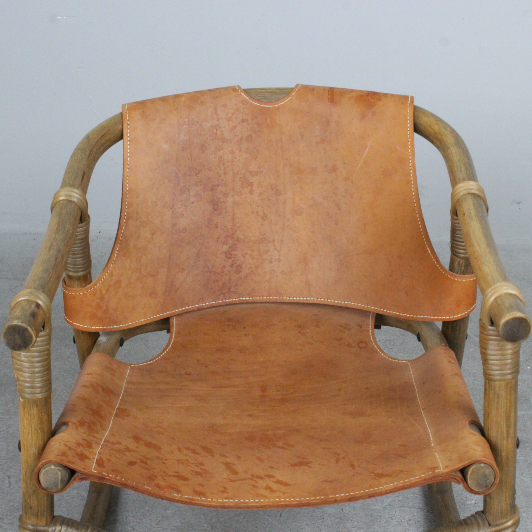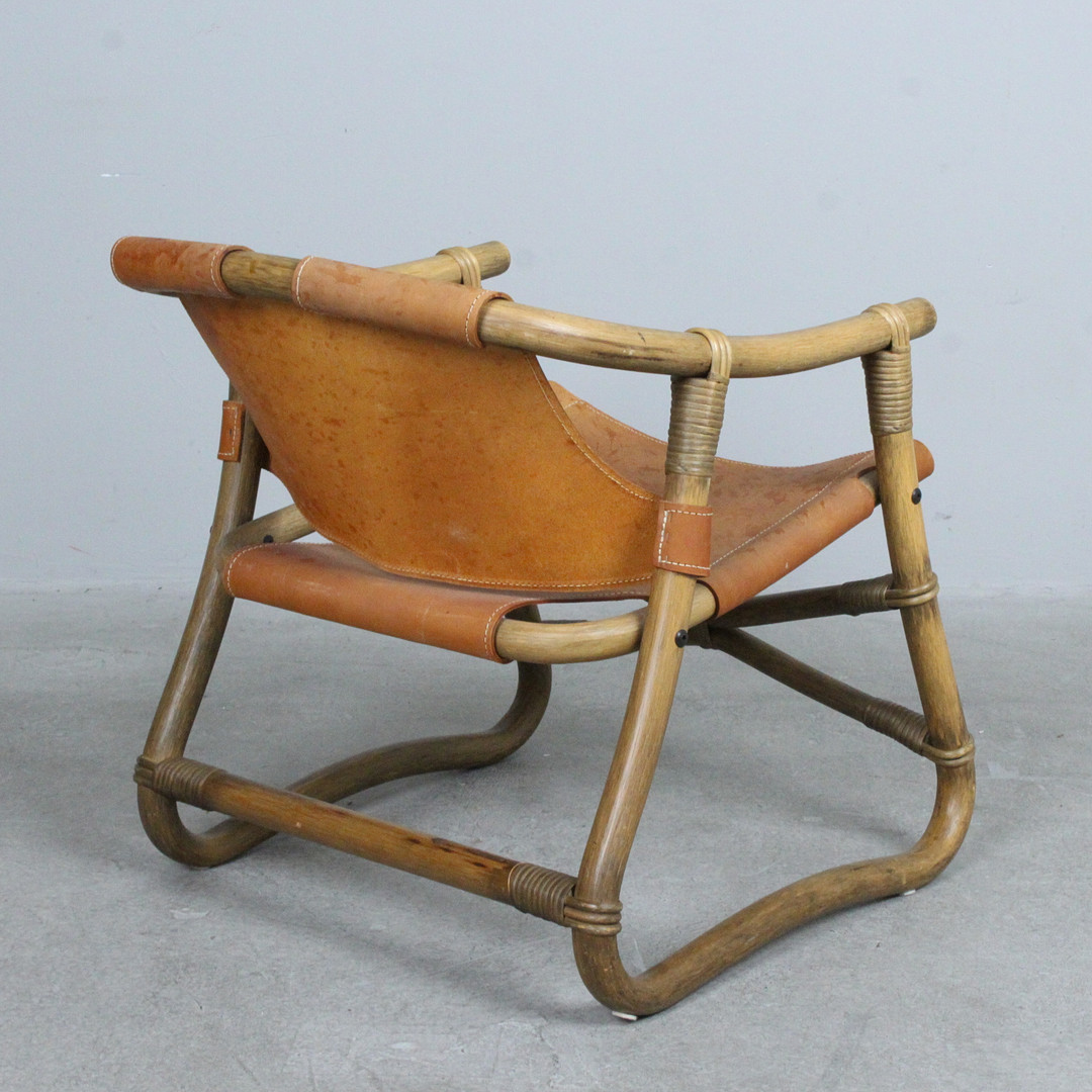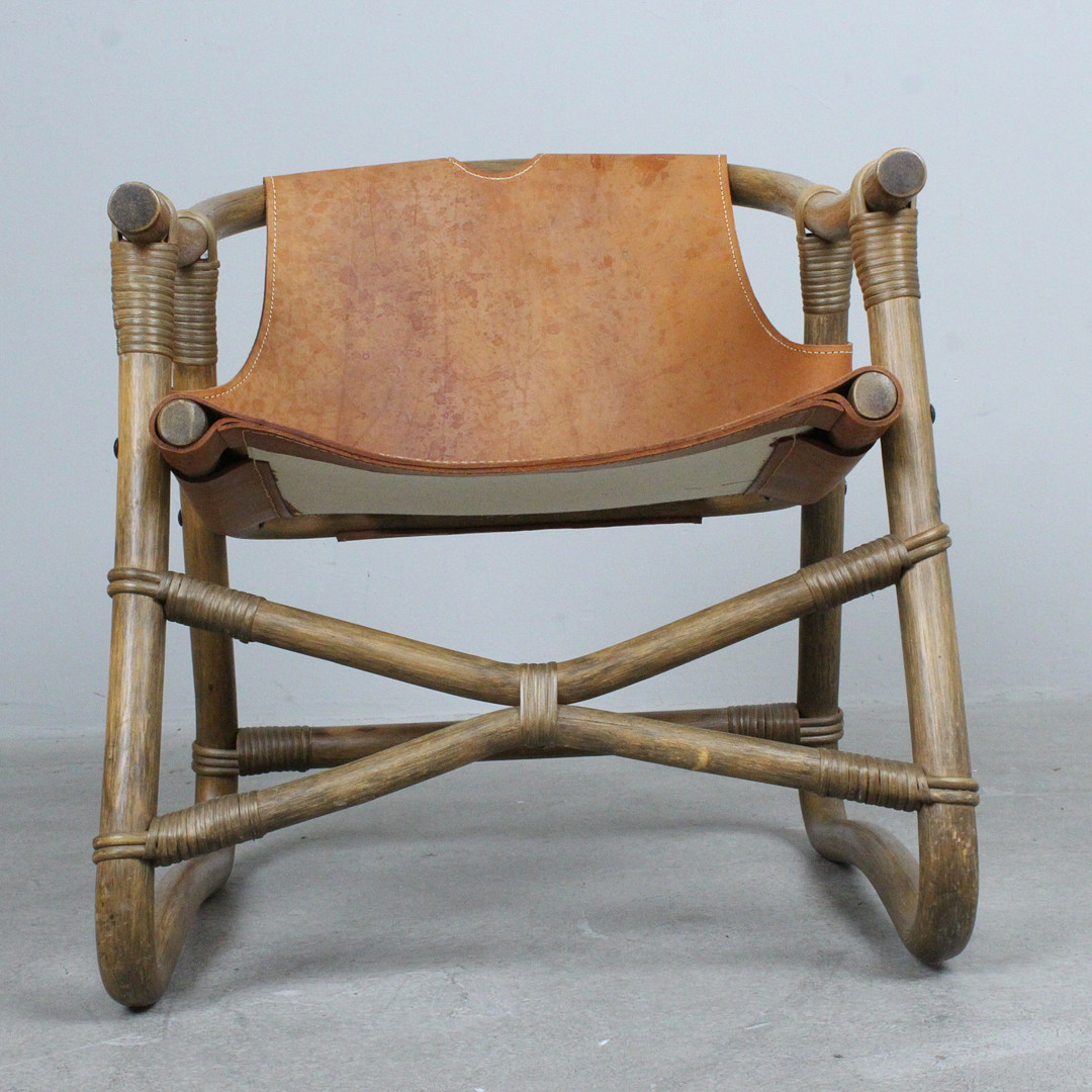 4401181. IKEA. Sessel „Espri“, Leder, Bambus, 1970er.