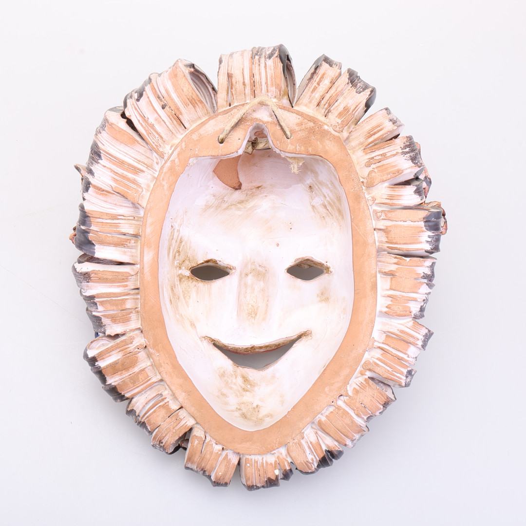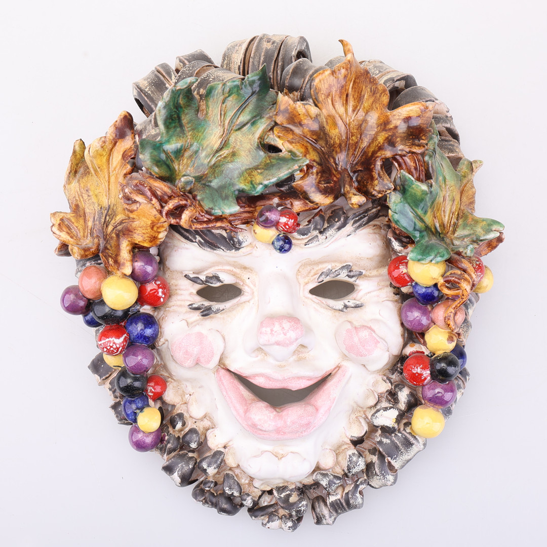 4402159. WANDMASKE, Keramik, Gesicht mit Früchten.