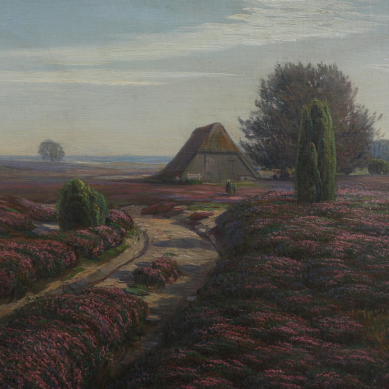 ARNOLD LYONGRÜN. HEIDEKRAUT, BLÜHENDE HEIDE, ÖL AUF LEINWAND.