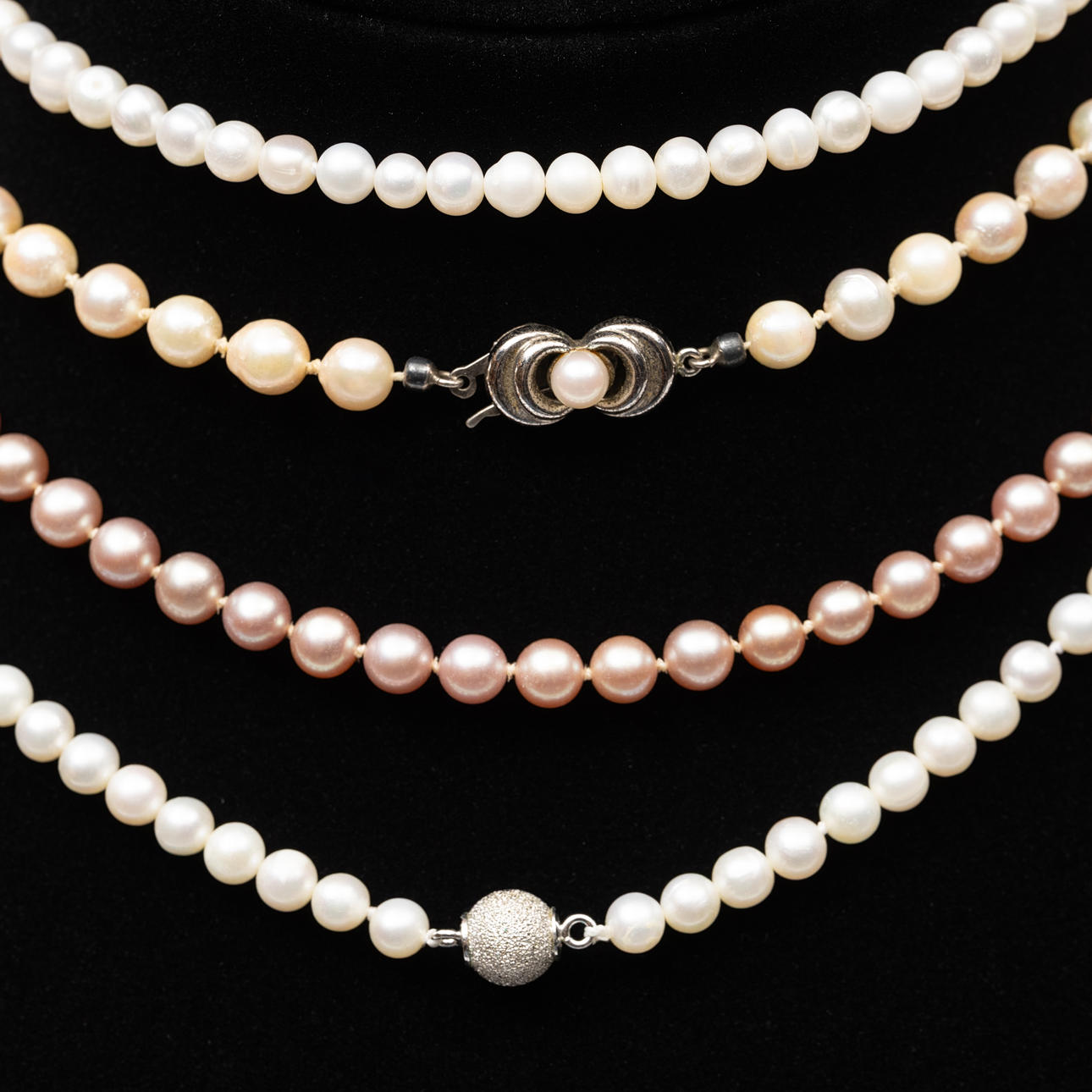 4403522. PERLENKETTE, 3 Stück, Silber.