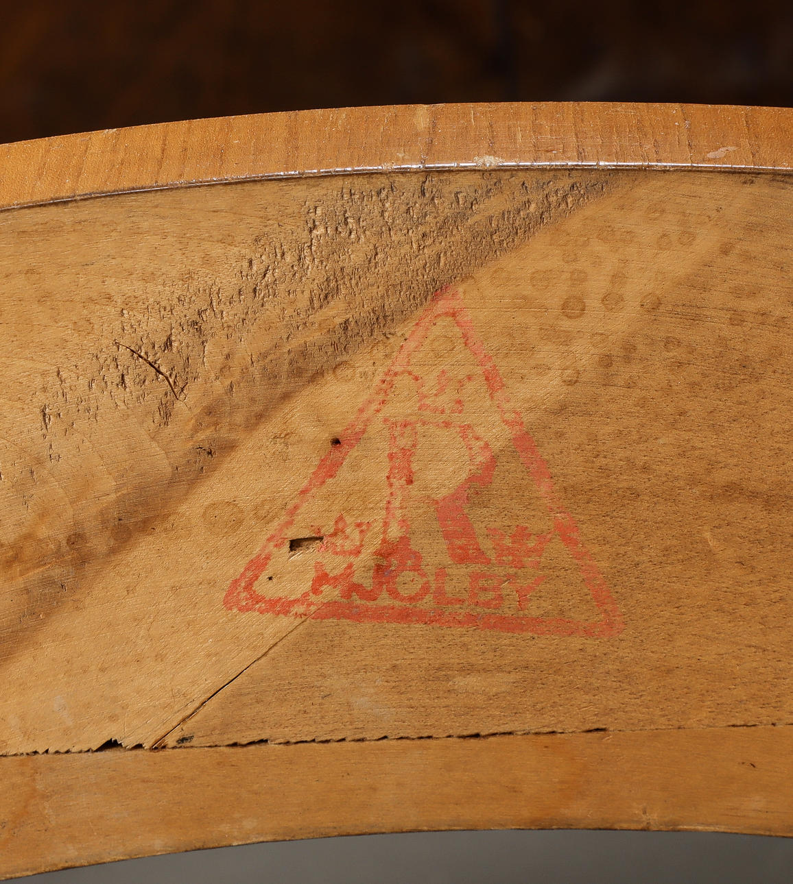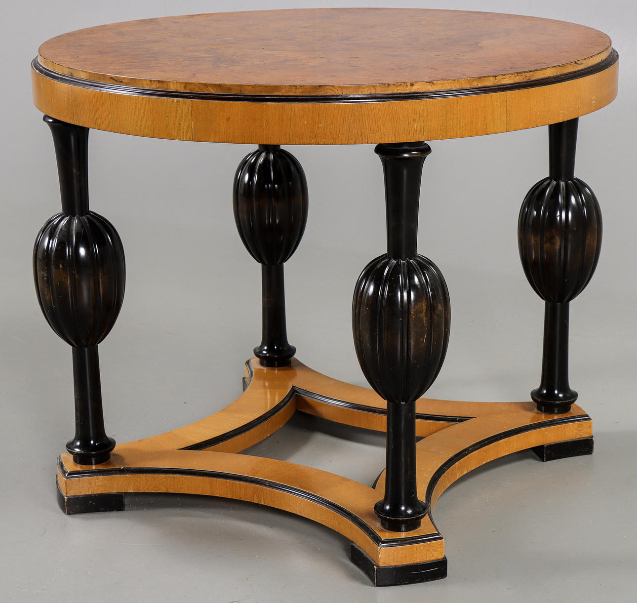Birke, Ulme und Scheibe mit Wurzelfurnier, gestempelt.
