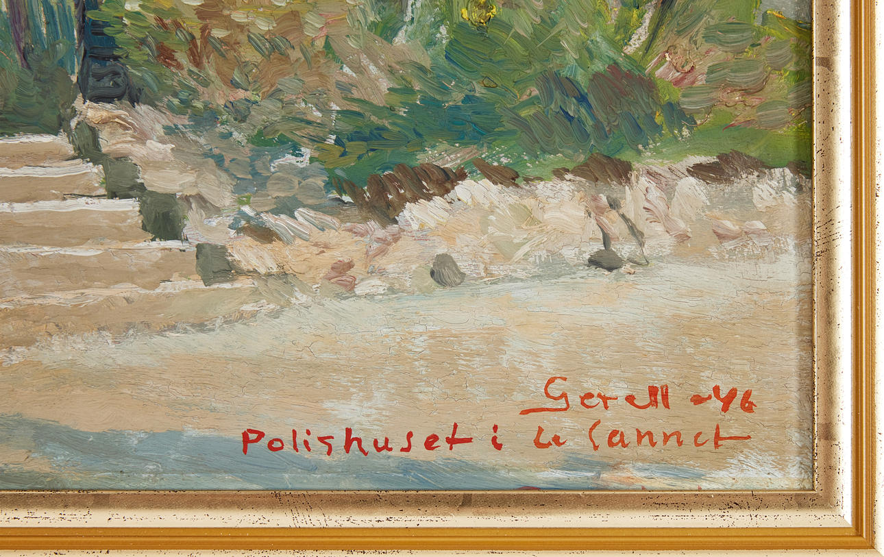 Öl auf Holz, 40 x 32,5 cm, einschließlich Rahmen 51,5 x 44 cm. Signiert und datiert Gerell -46 Police House in Le Cannet.