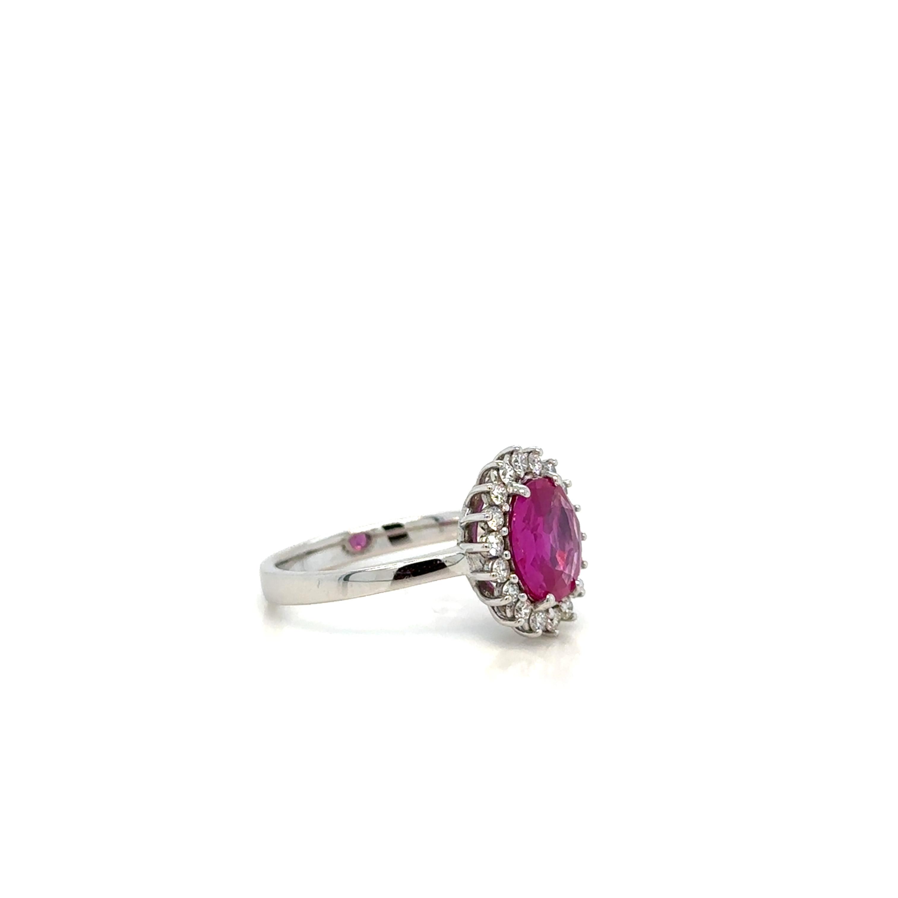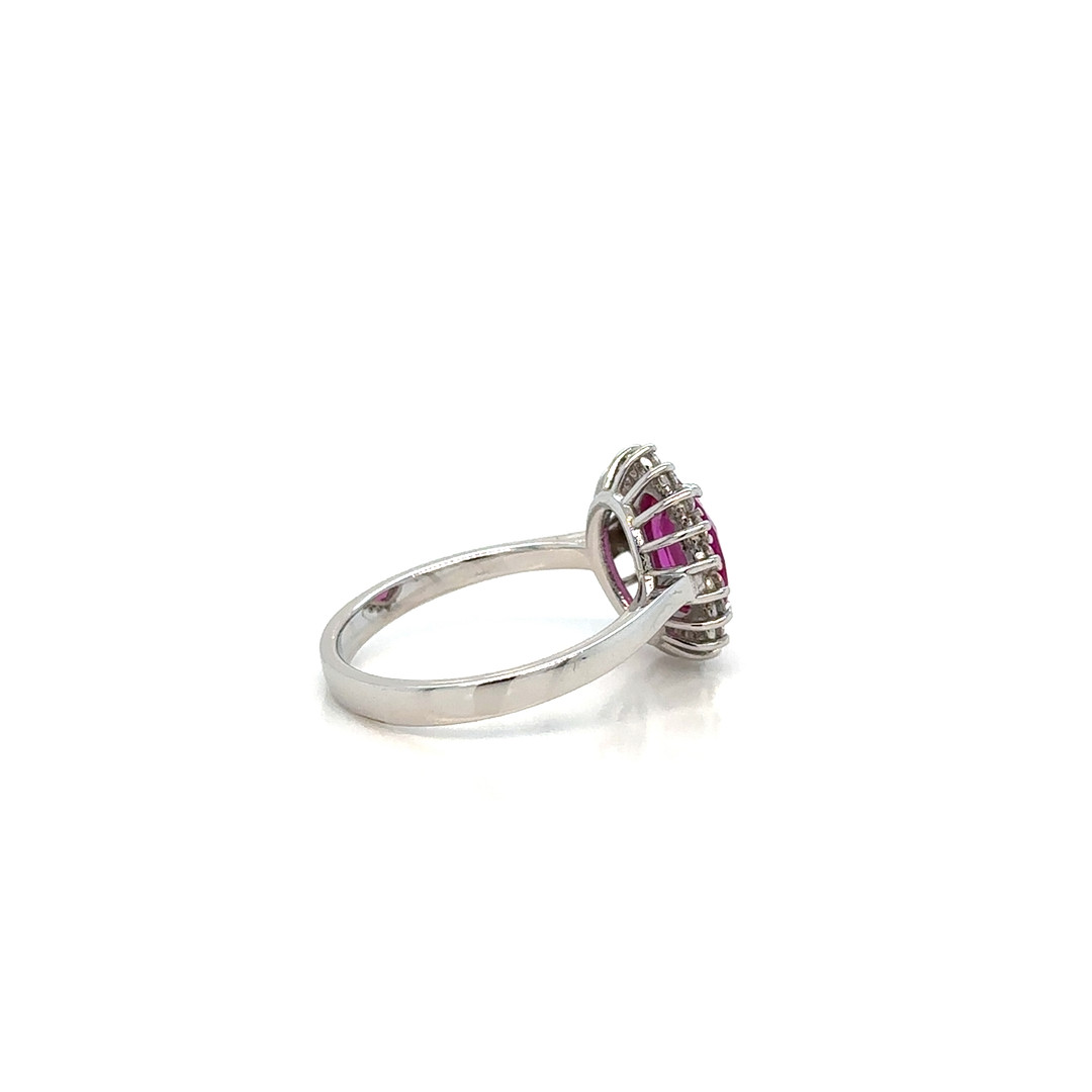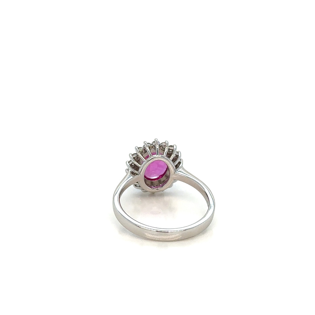 4405437. ROSAFARBENER SAPHIR- UND DIAMANTRING 18 KARAT.