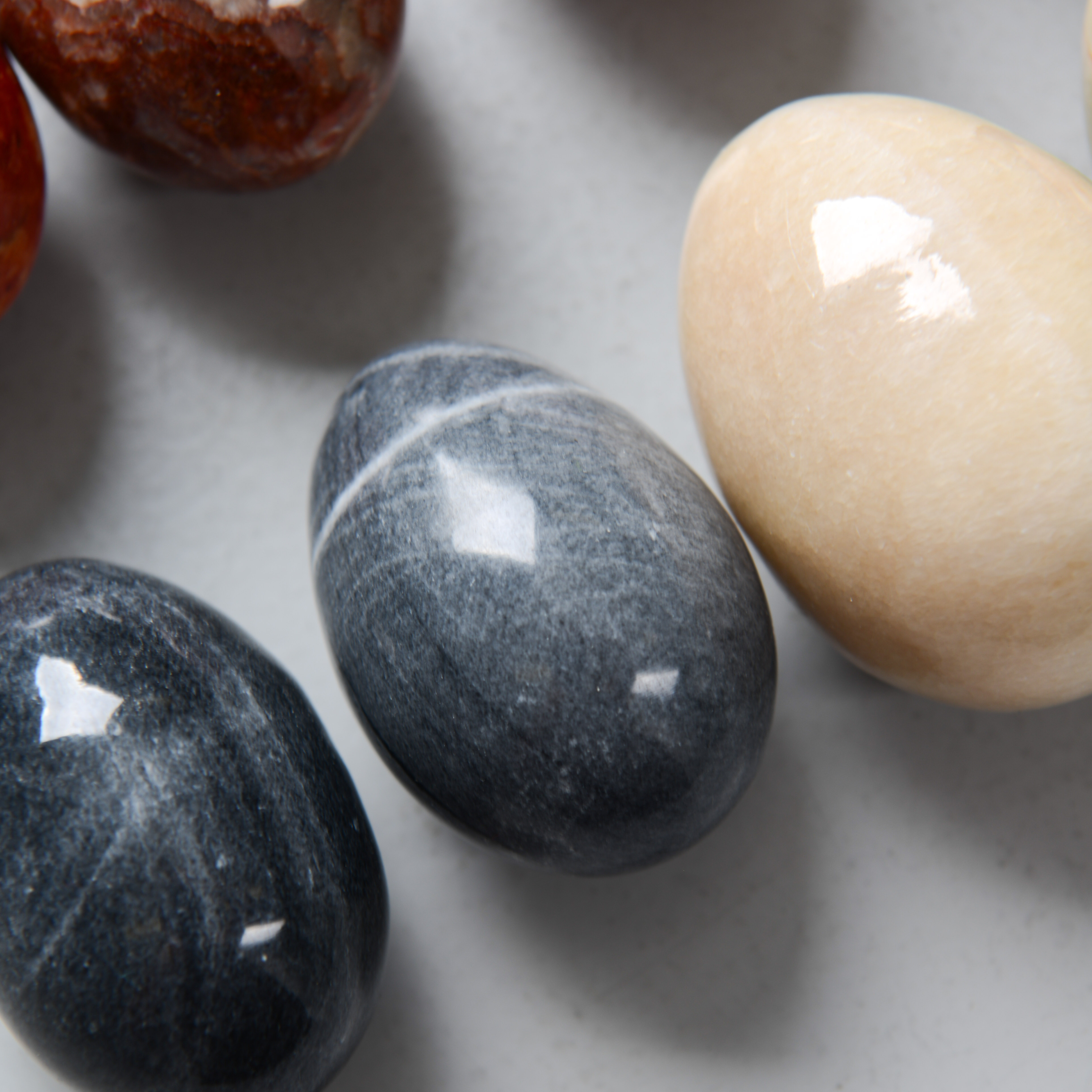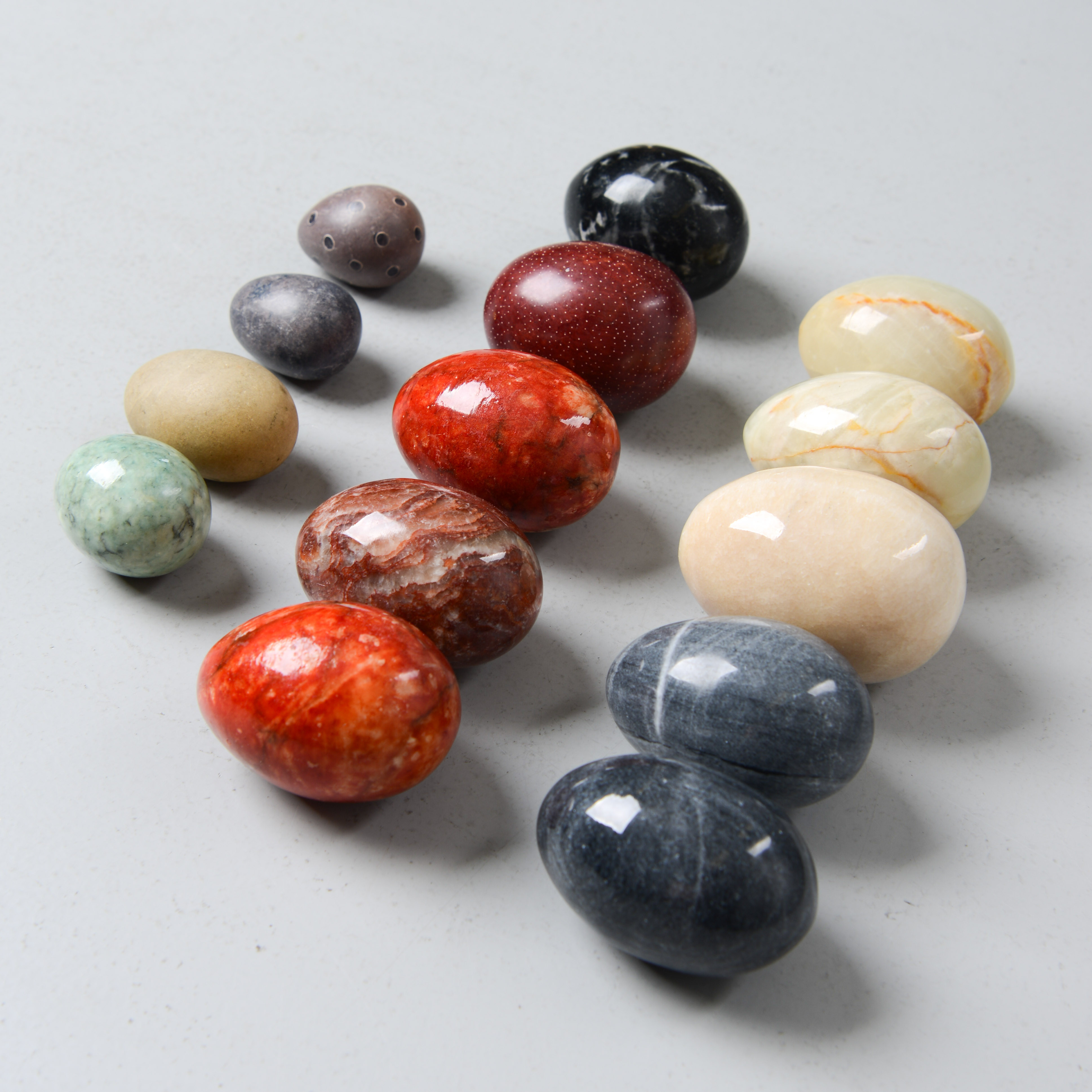 4405850. STEINEIER, 14 Stück, verschiedene Steinsorten.