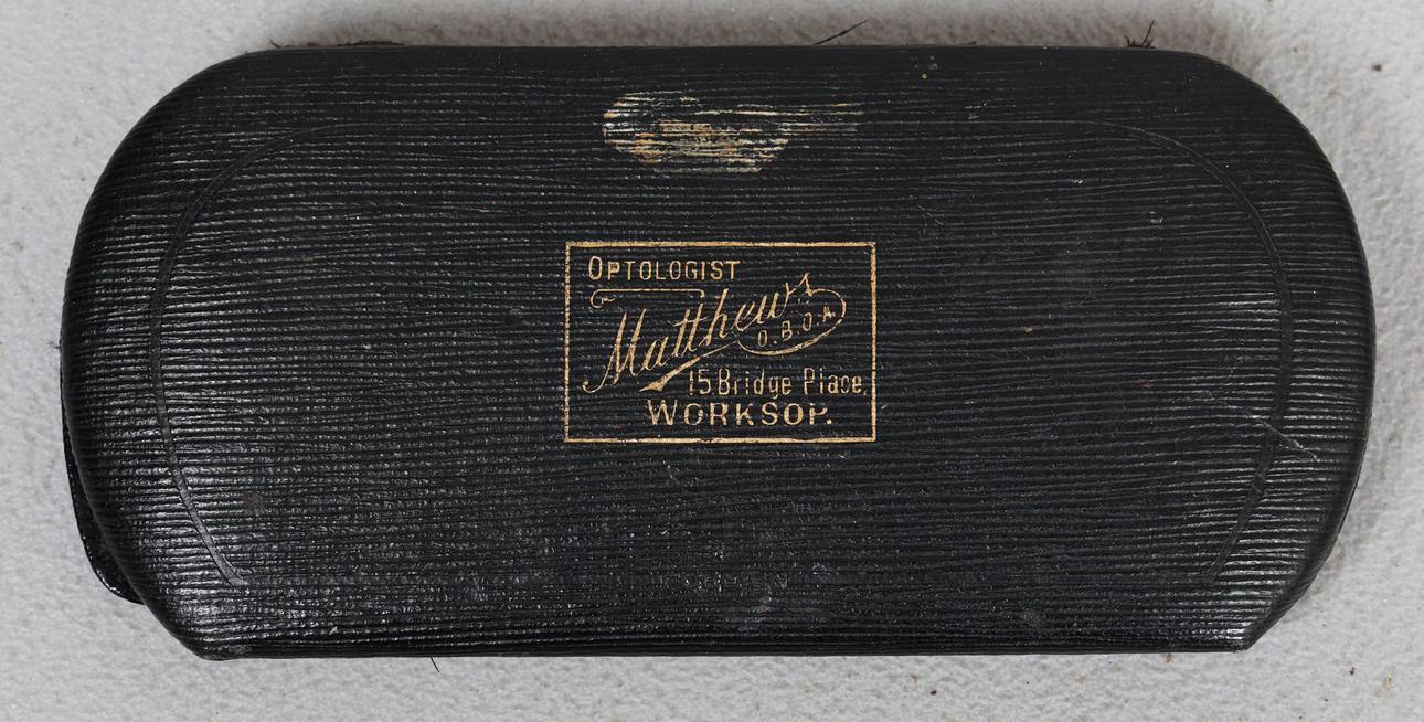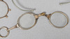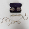 Die zusammenklappbaren Lorgnetten mit vergoldetem Korpus, die Brille beinhaltet ein Paar mit Schildpattrand, in einem Brillenetui, das größte Paar ist 12,5 cm breit (5).