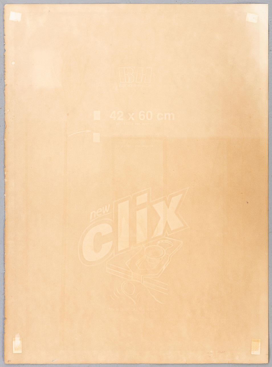 Max Ernst (1891-1976), Beim ersten klaren Wort, Farblithographie, nach dem gleichnamigen Gemälde von 1923, ca. 76 x 55 cm, Blattformat ca. 59,5 x 80,5 cm.