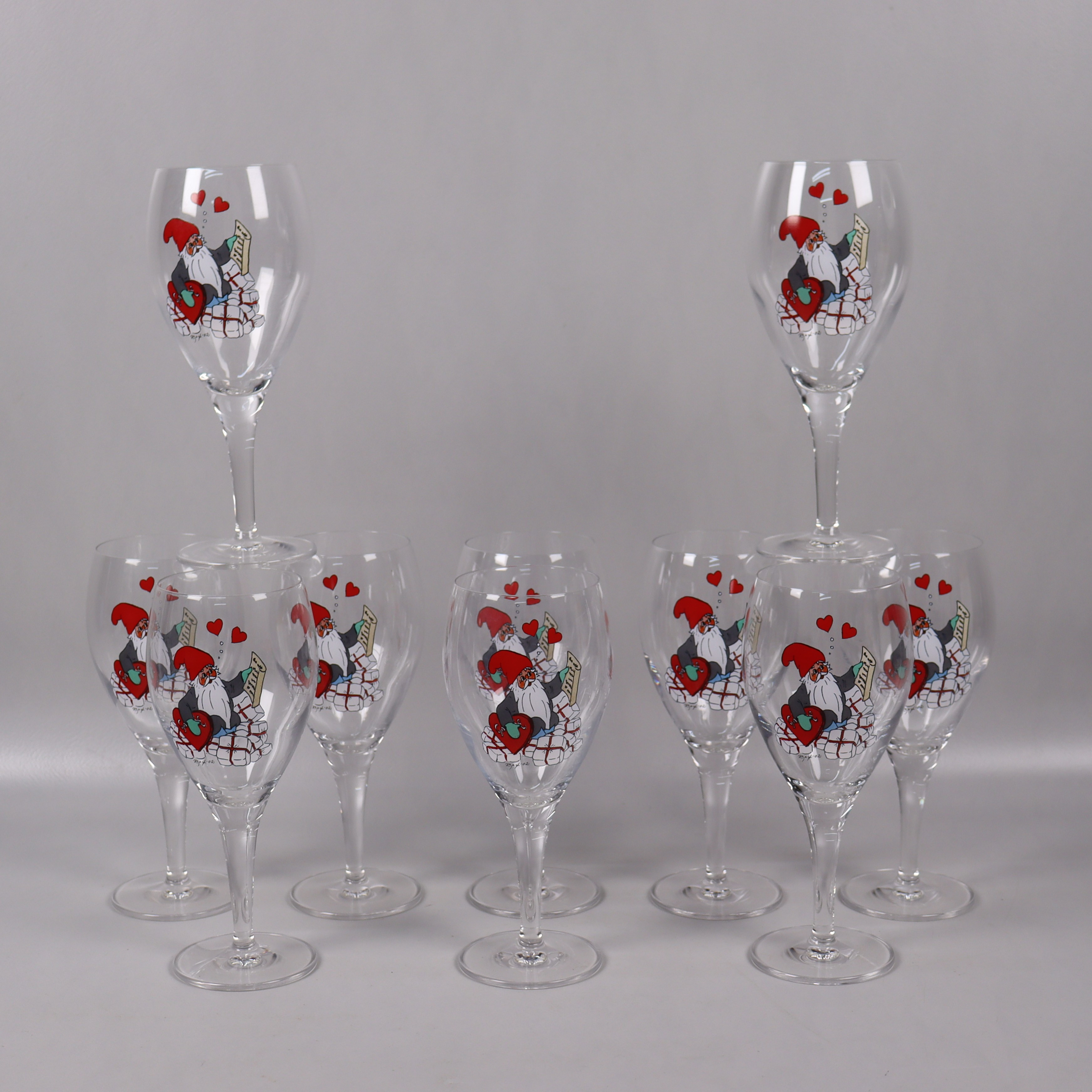4409246. ROLF BERGH, Weingläser mit Weihnachtsmanndekor, 10 Stück.