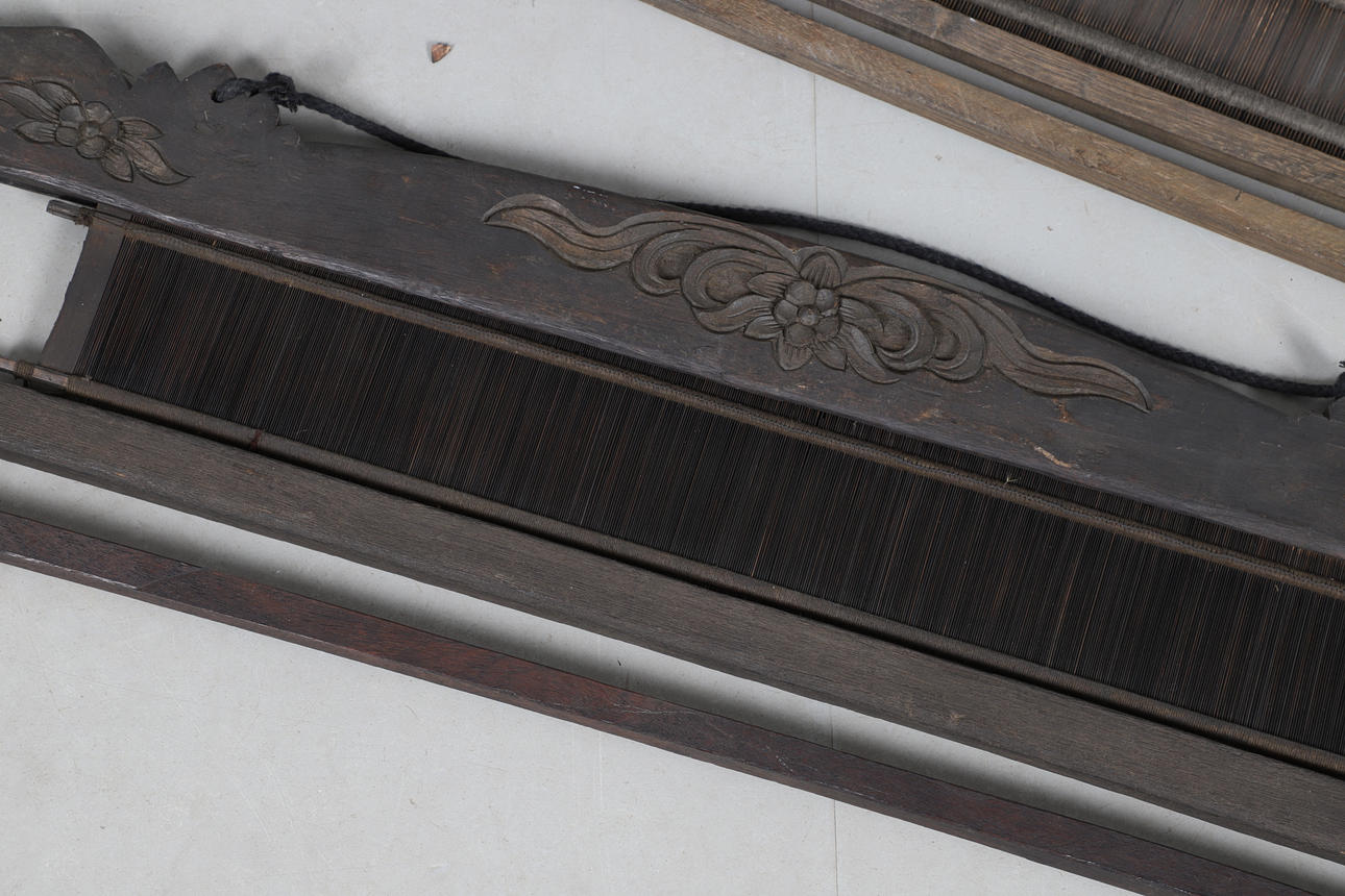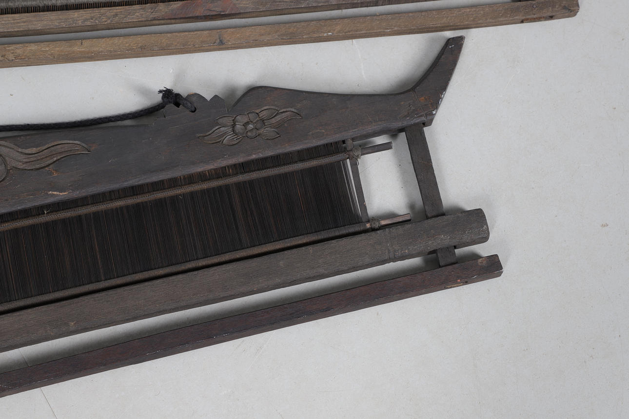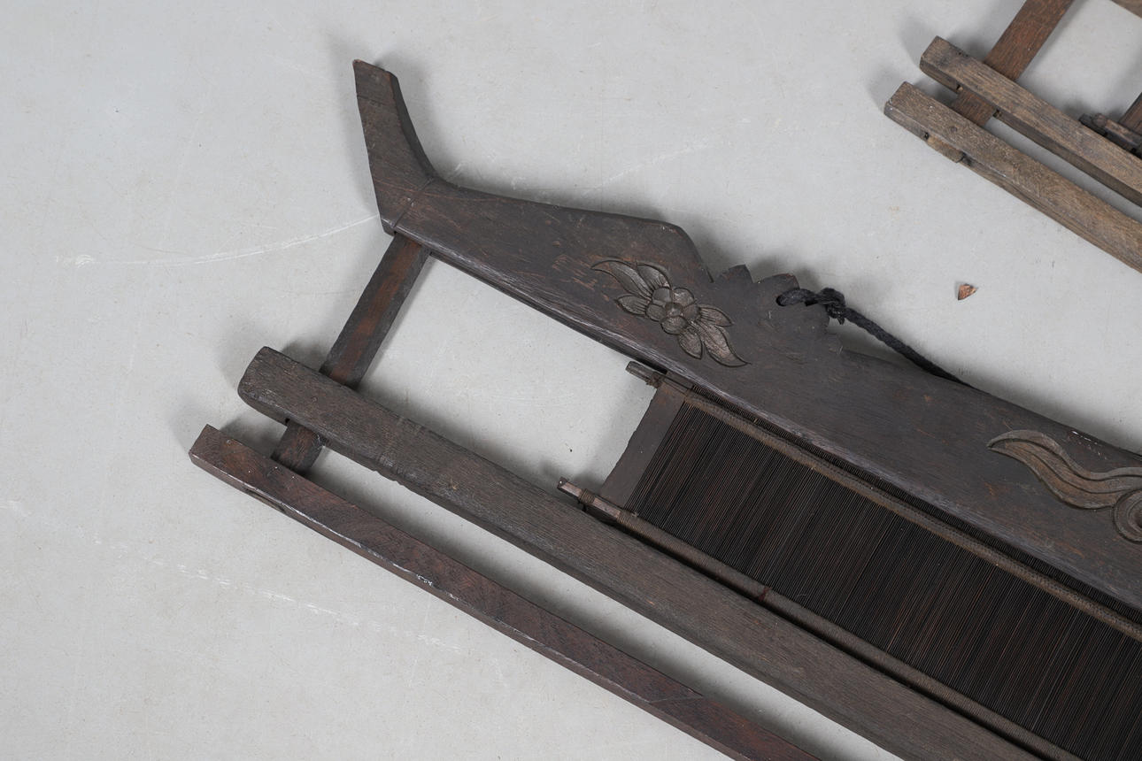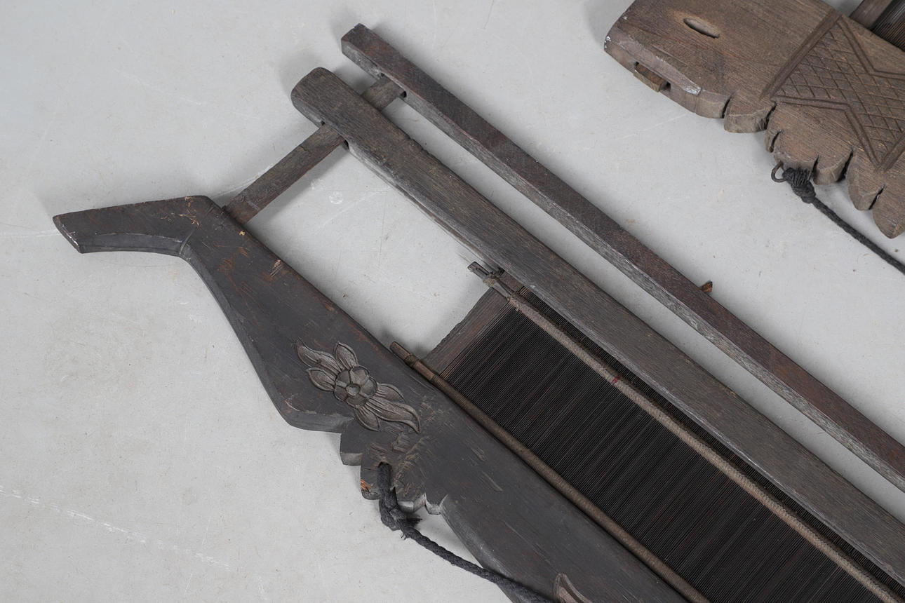 ZWEI FERNÖSTLICHE HOLZWEBSTÜHLE.