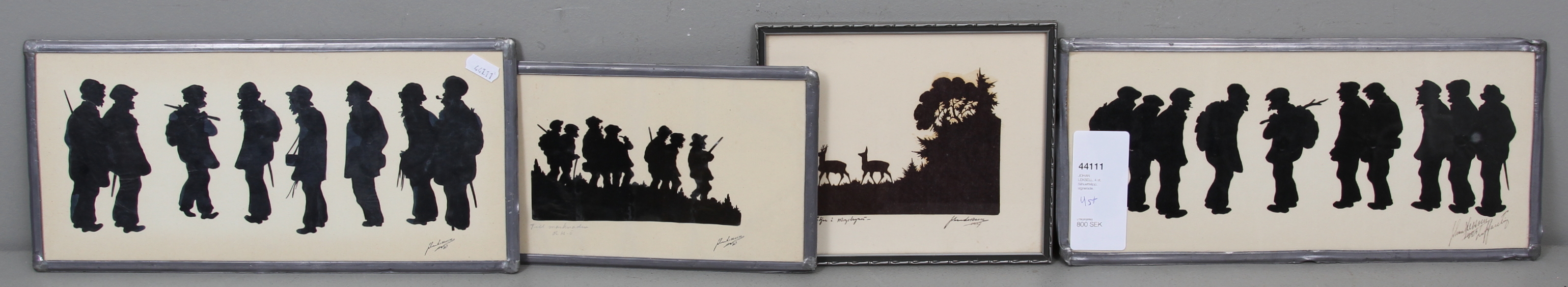 44111. JOHAN LEKSELL. 4 Stück, Scherenschnittclips, signiert.