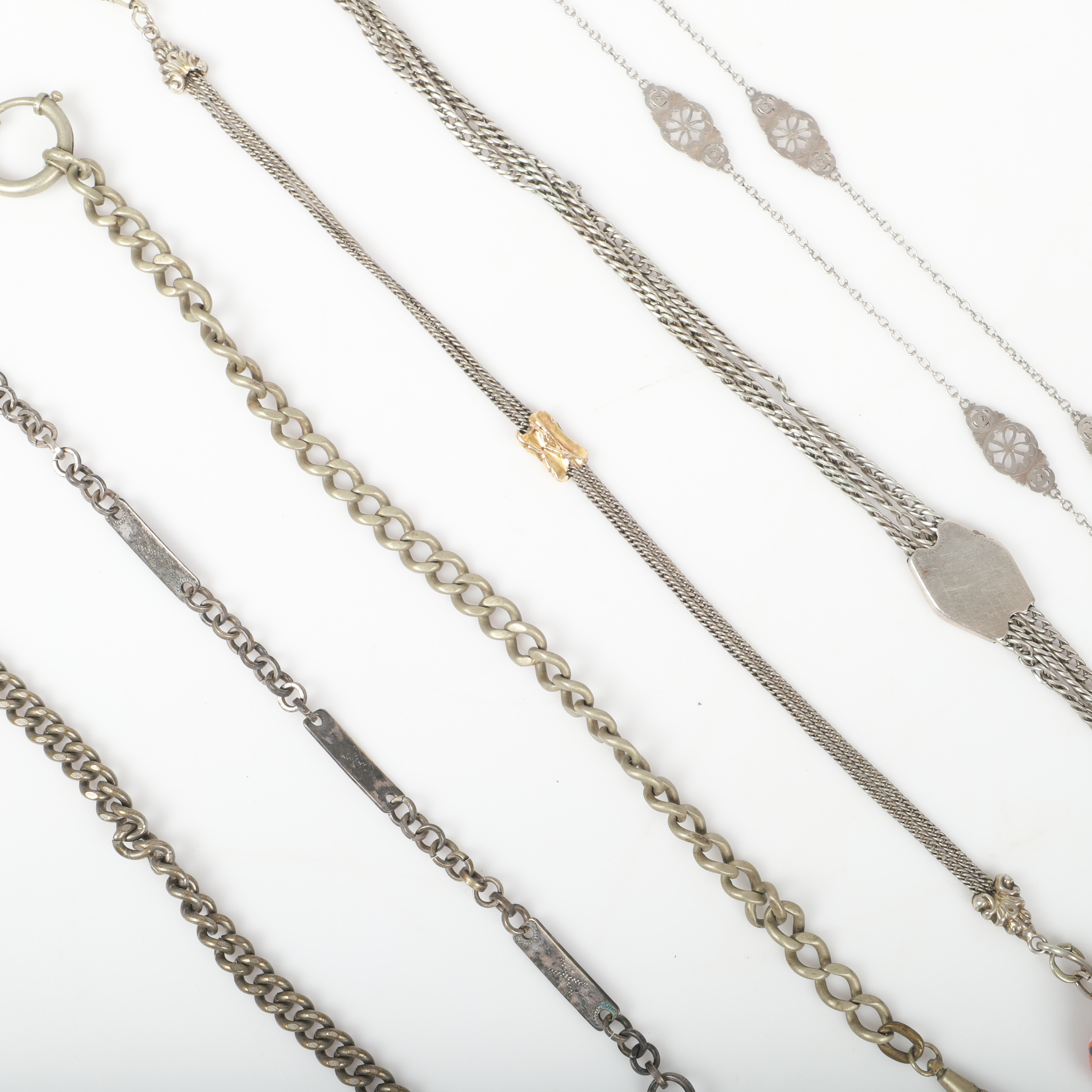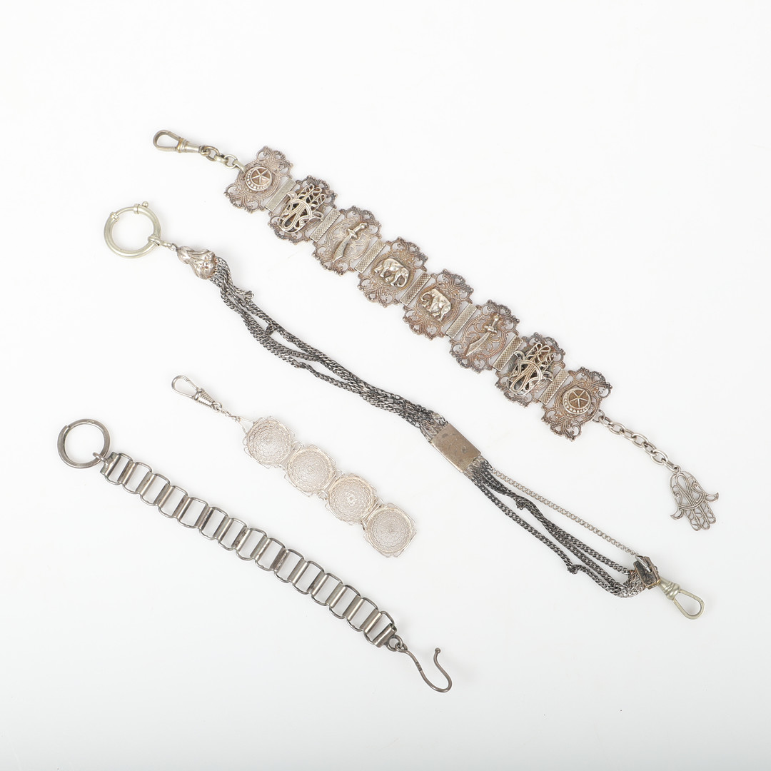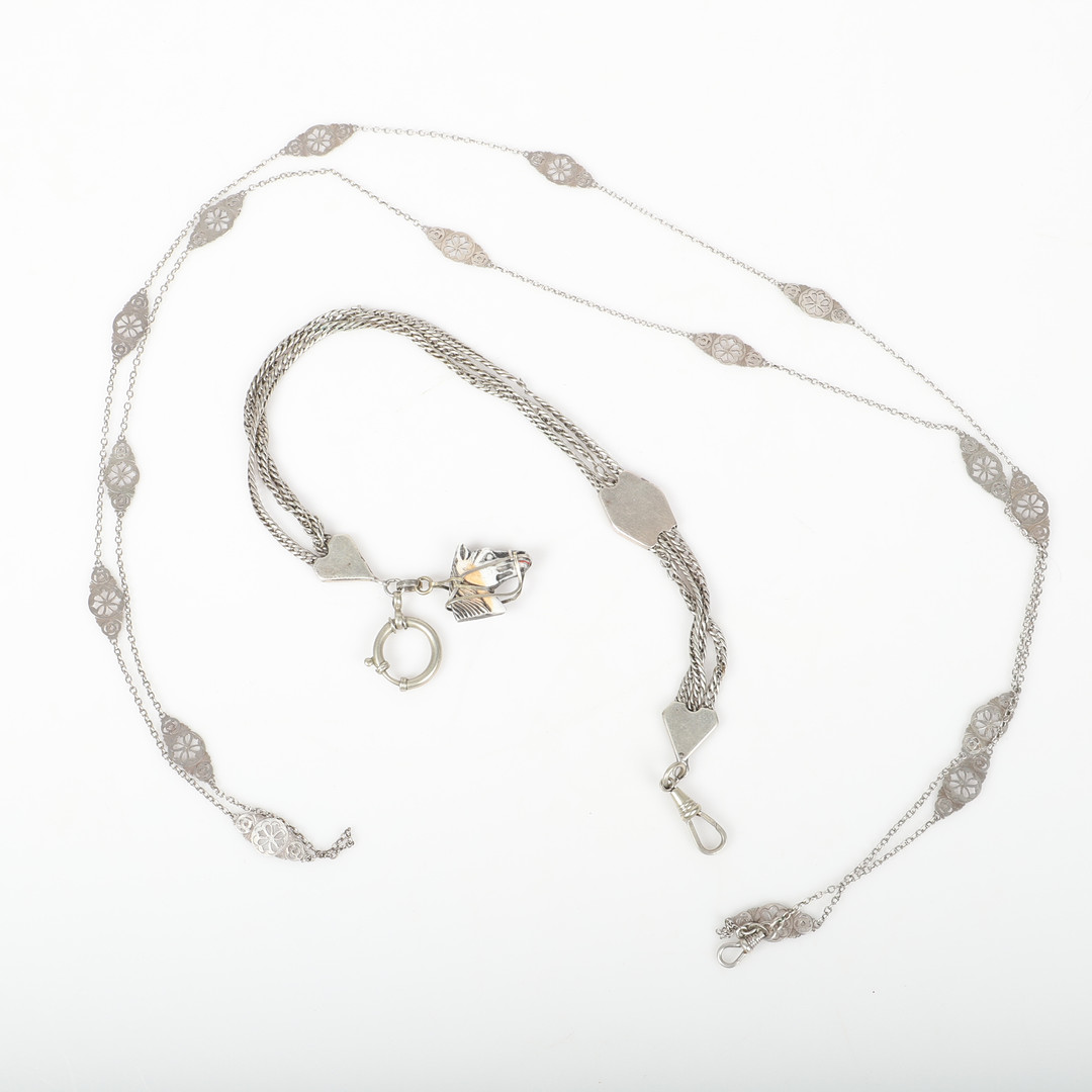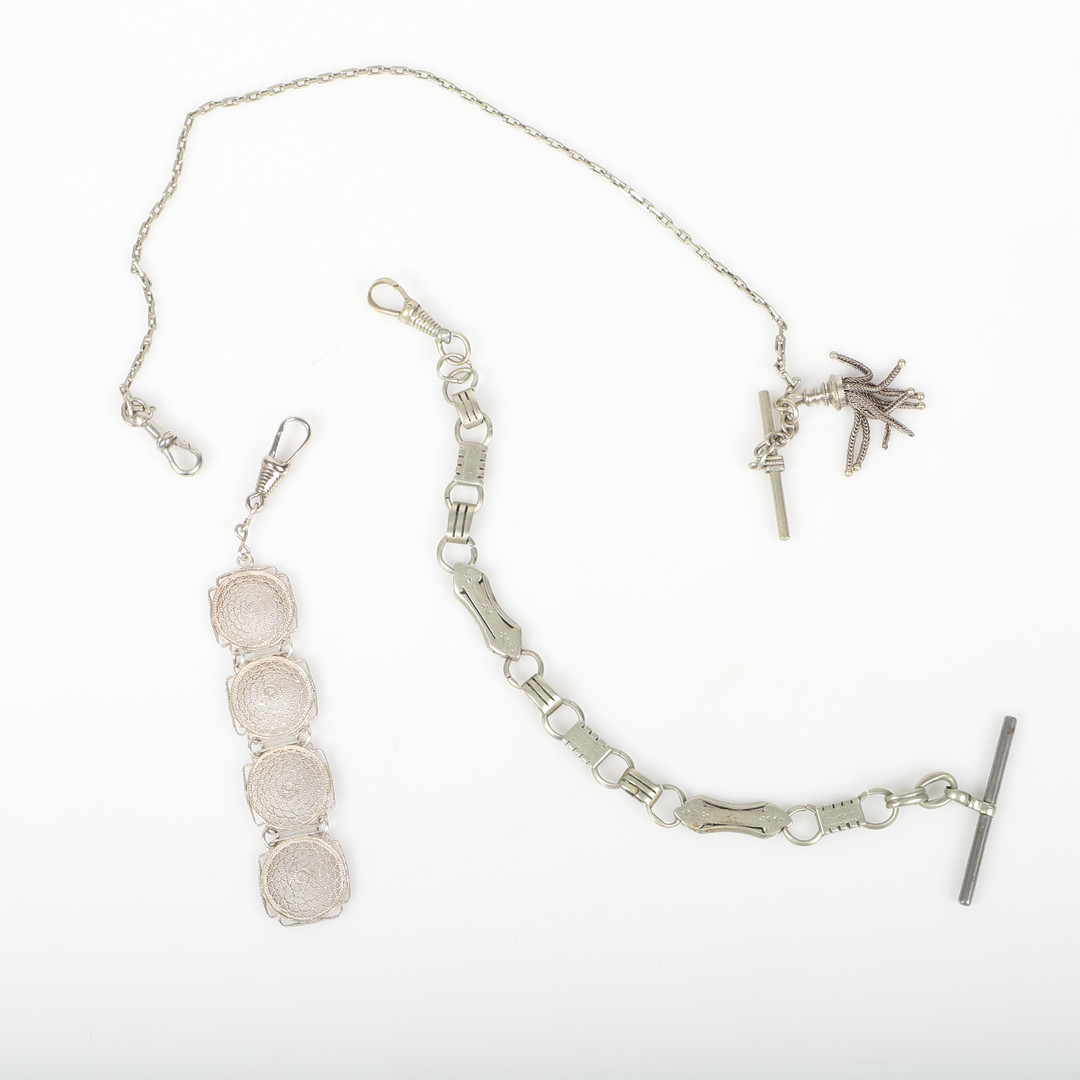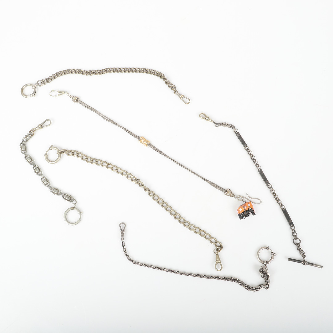 4412934. UHRENKETTEN UND CHATELAINE, 15 Stück, Weißmetall.