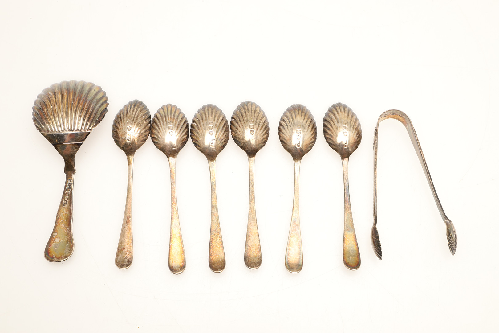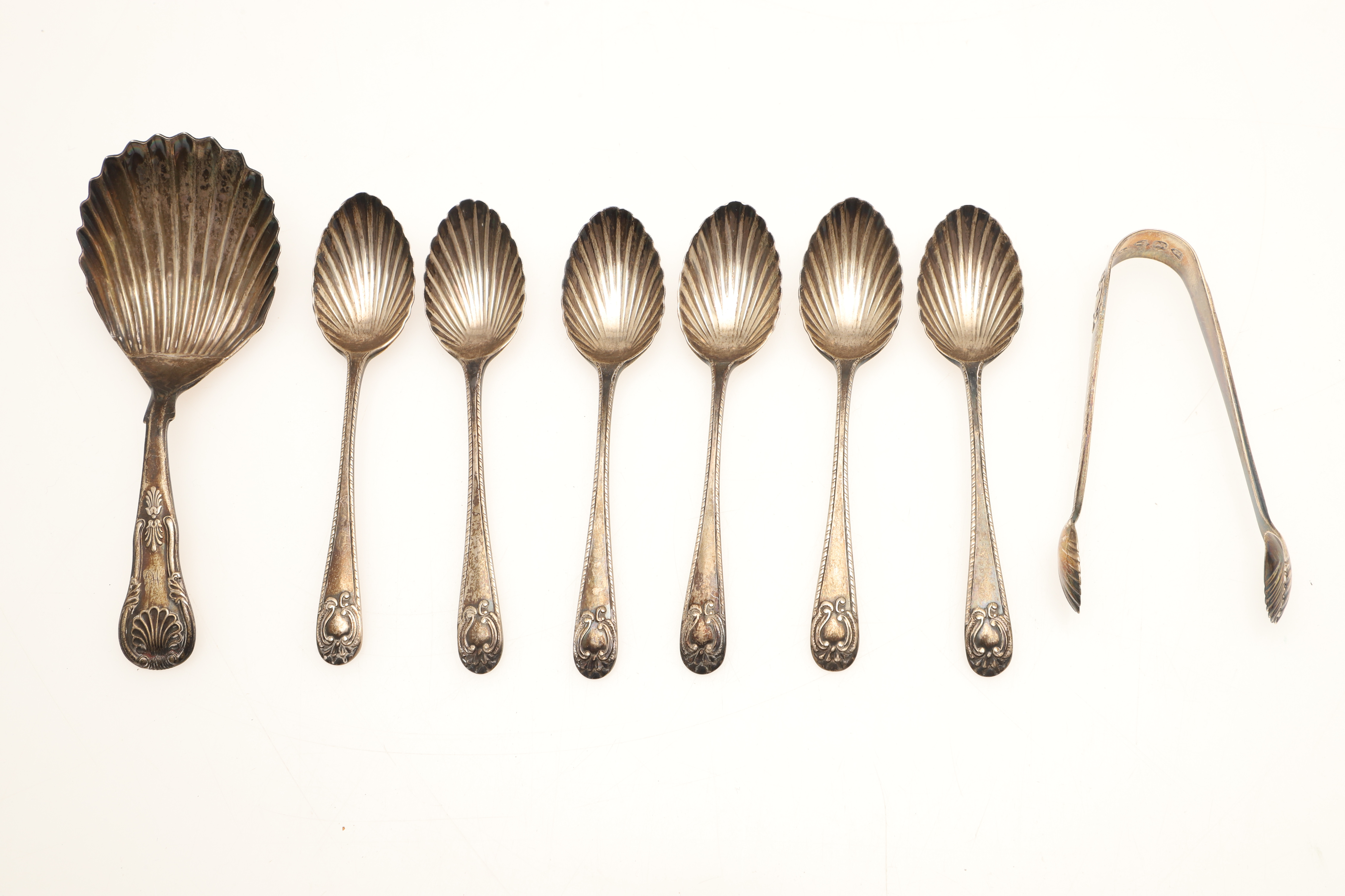 4413159. EIN VIKTORIANISCHER SCHOTTISCHER SILBER-CADDY-LÖFFEL UND ANDERES SILBER.