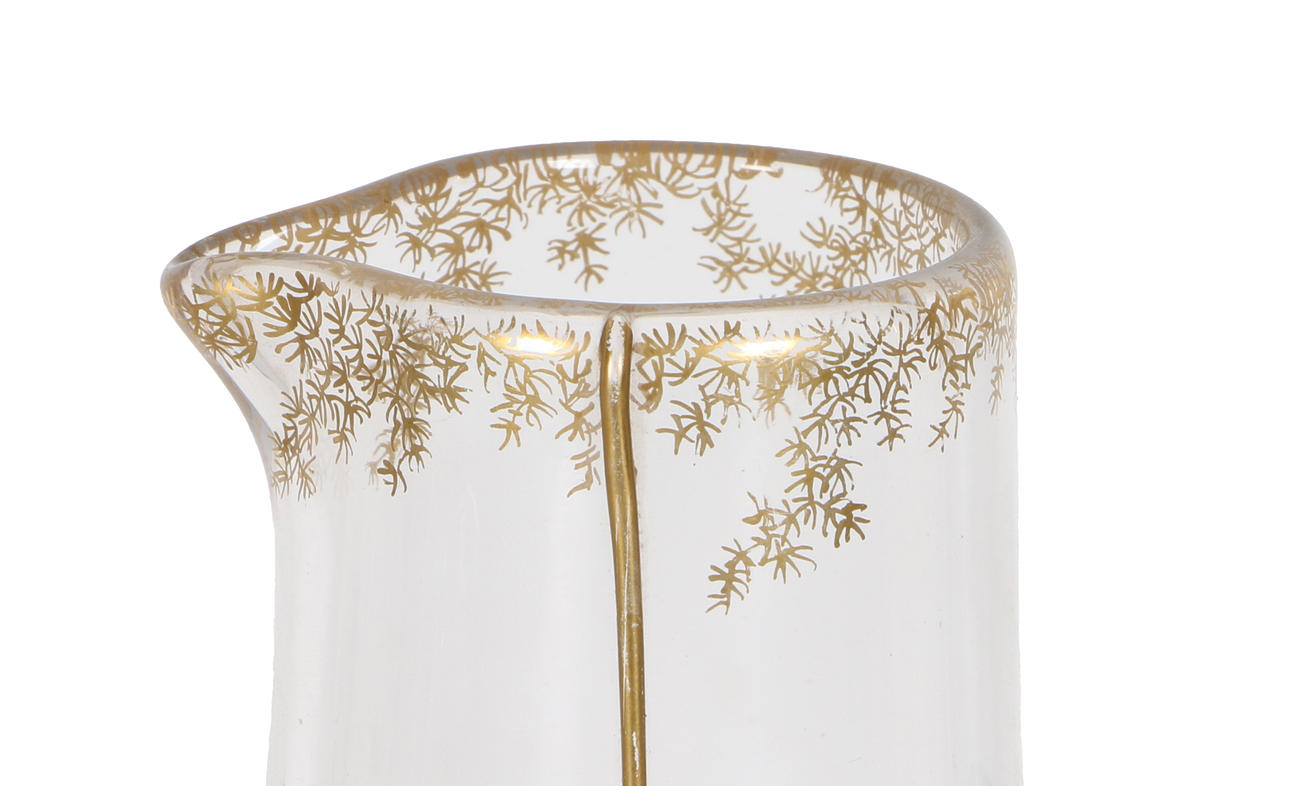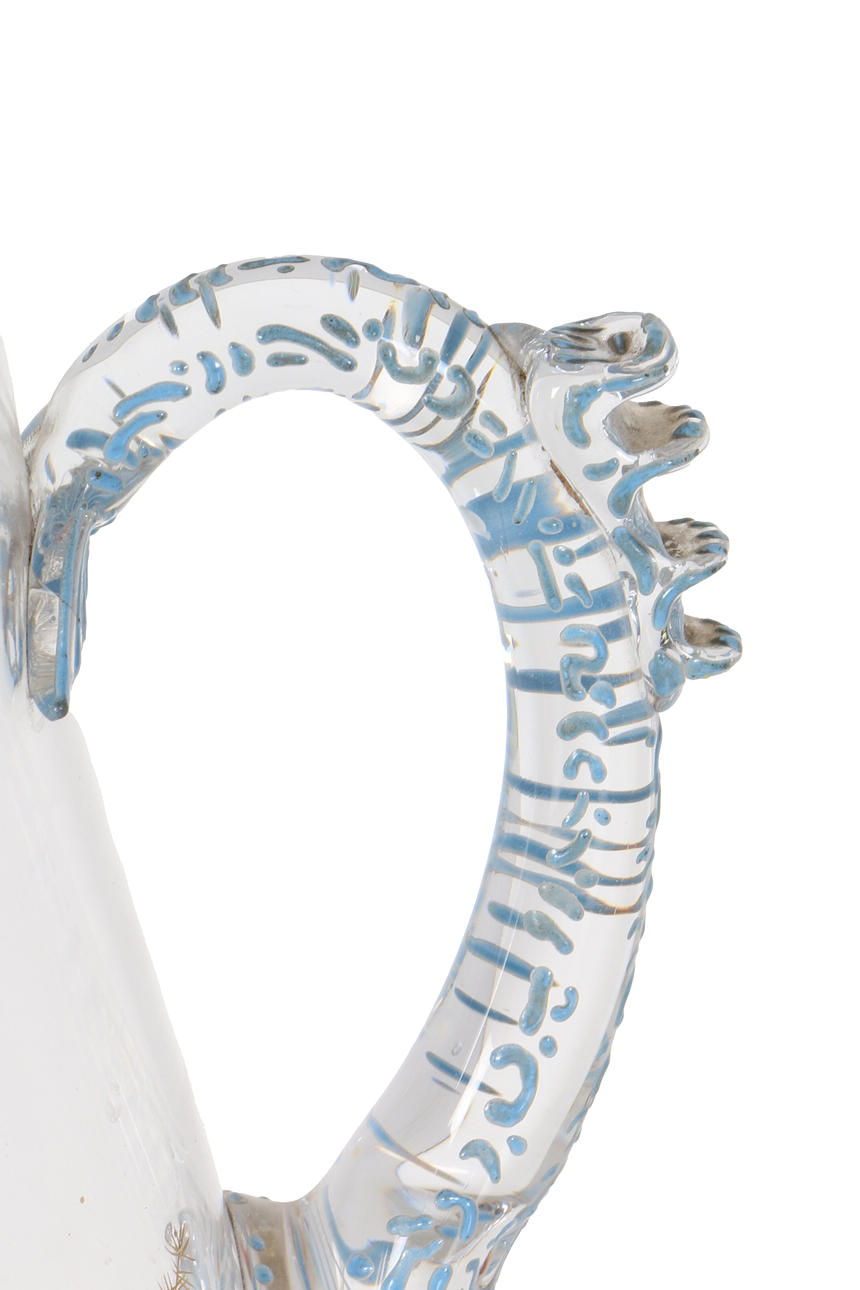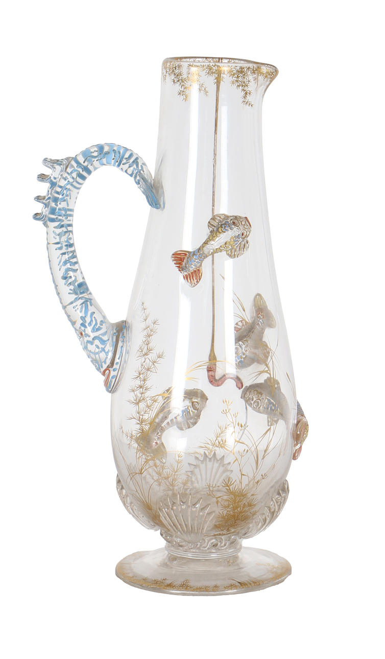 4413180. EINE GLASKANNE MIT ÄSTHETISCHEM UHRWERK, VON THOMAS WEBB, UM 1890.