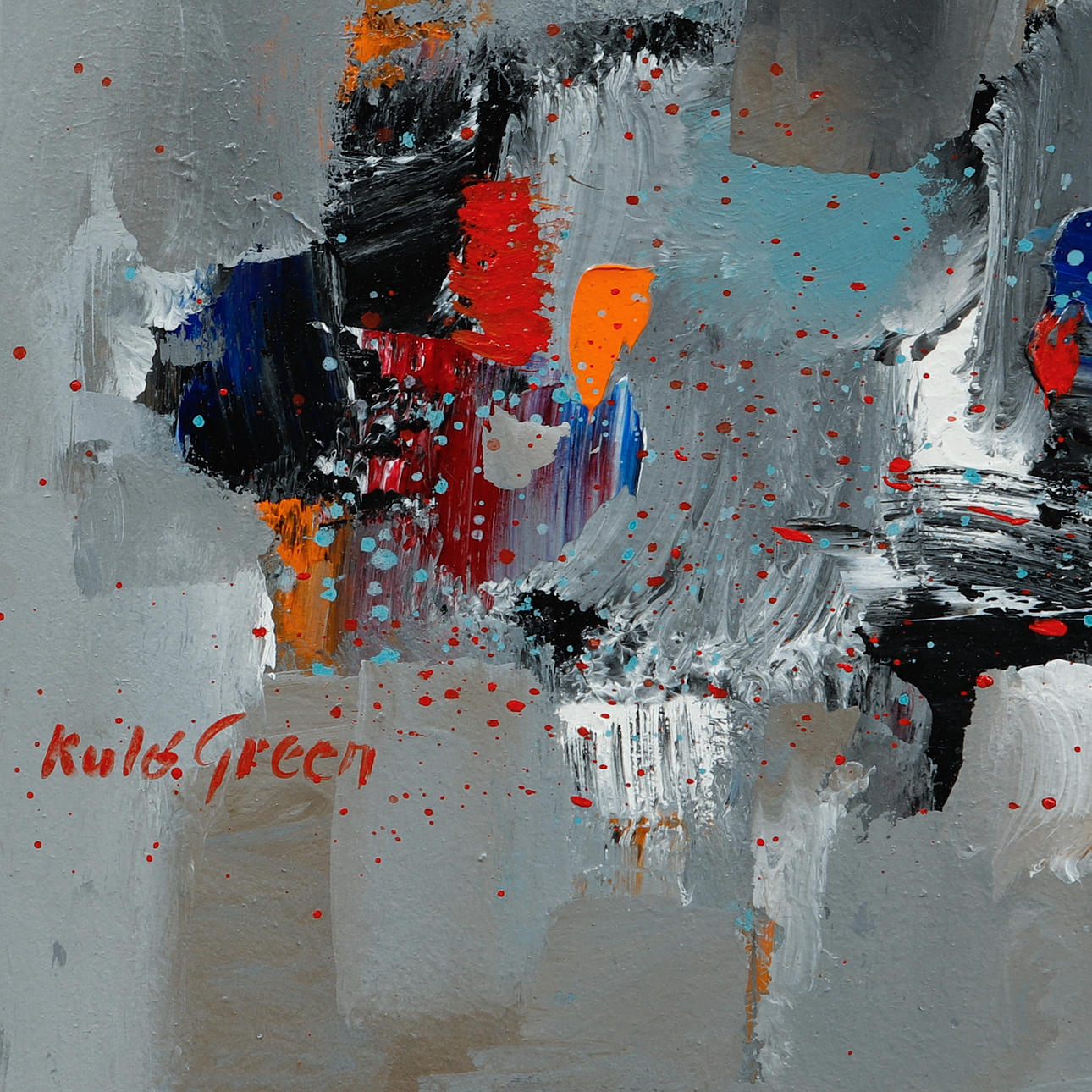 4413348. KULO GREEN. Abstrakte Komposition, Öl auf Holz, signiert.