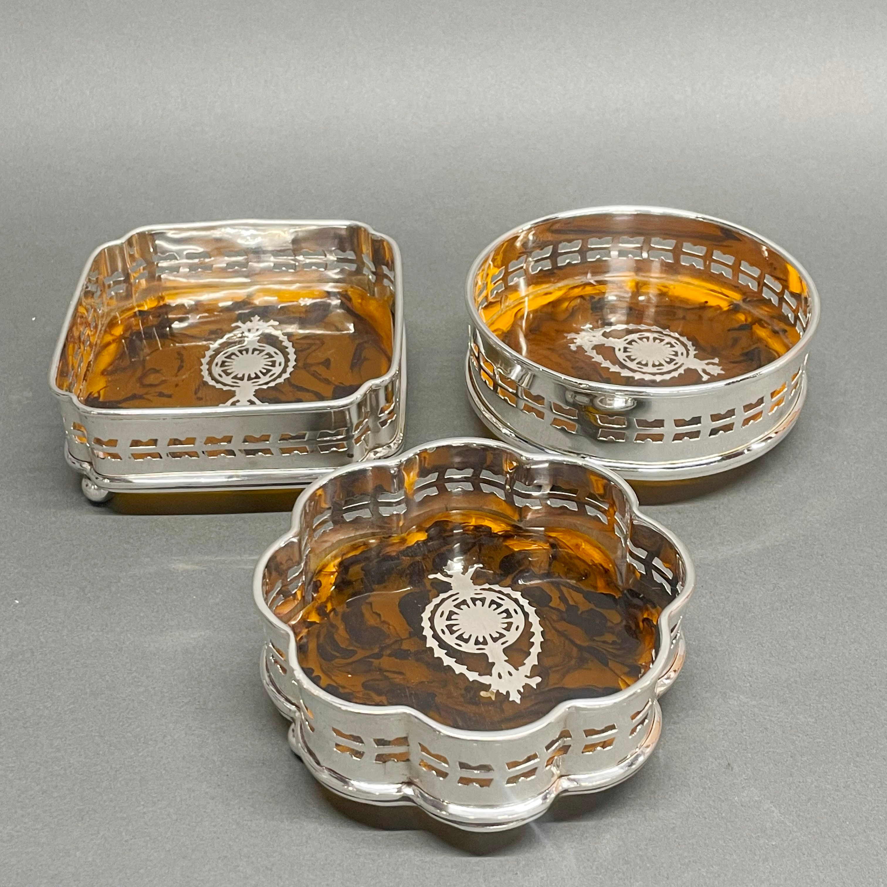 4413399. DREI VERSILBERTE WEINUNTERSETZER.