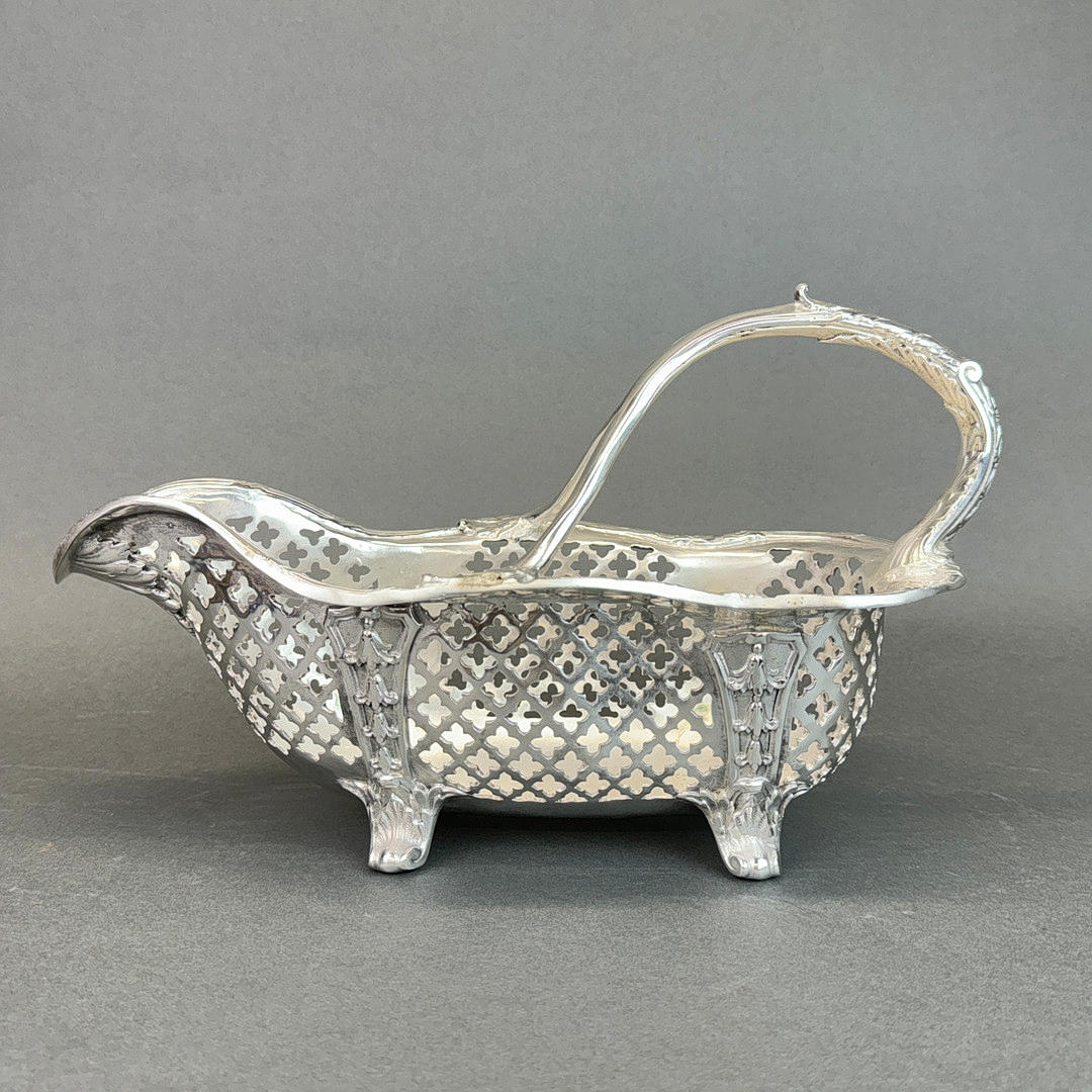 Weinflaschenausgießer aus versilbertem Metall, L. 35 cm.