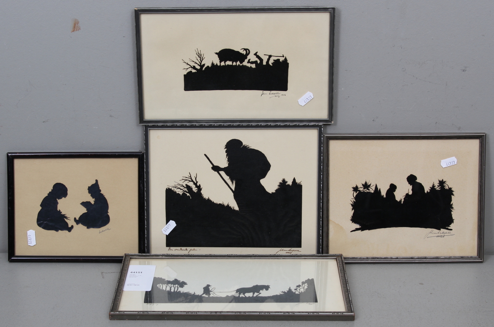 44151. JOHAN LEKSELL. , 5 Stk., Scherenschnittclips, signiert.