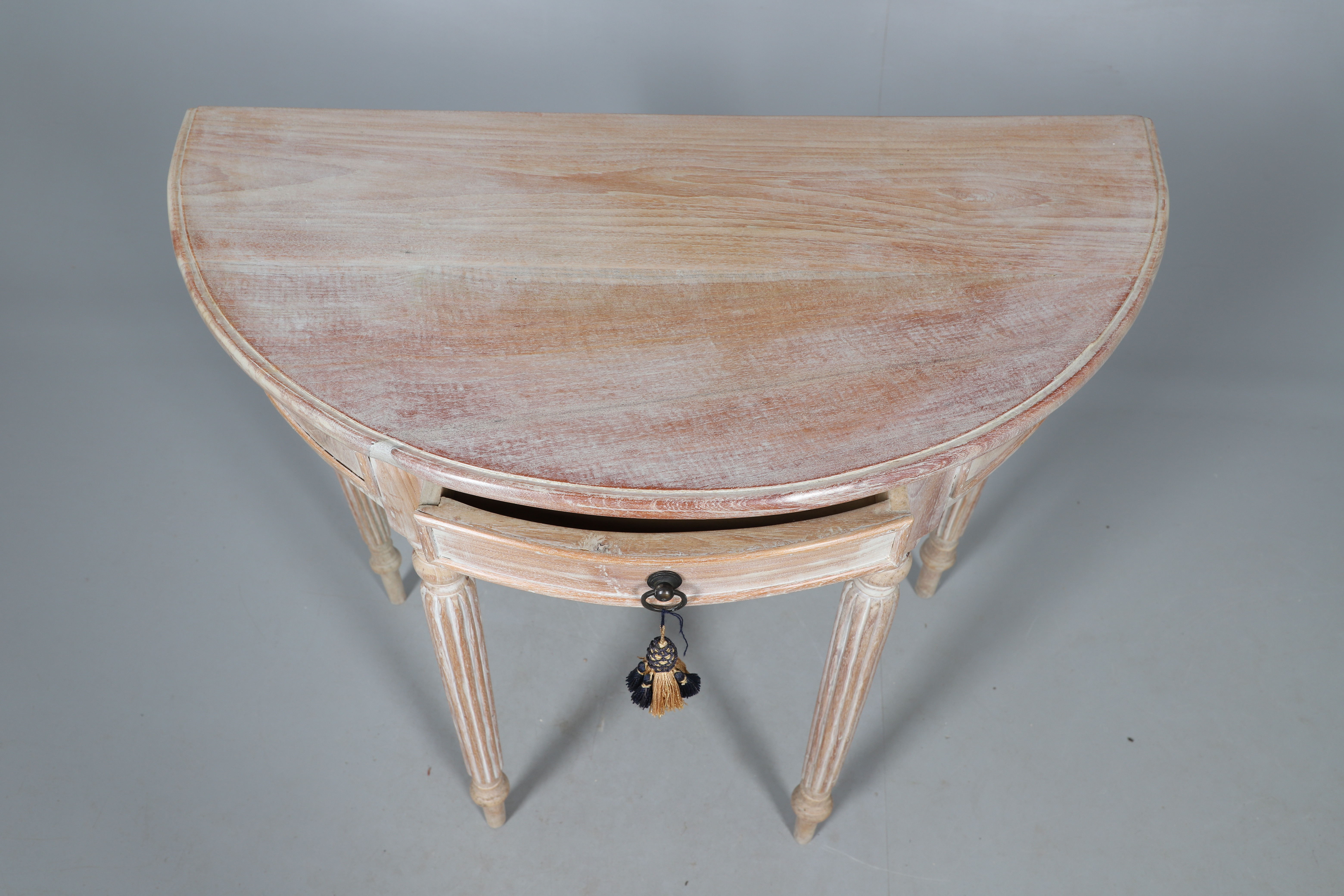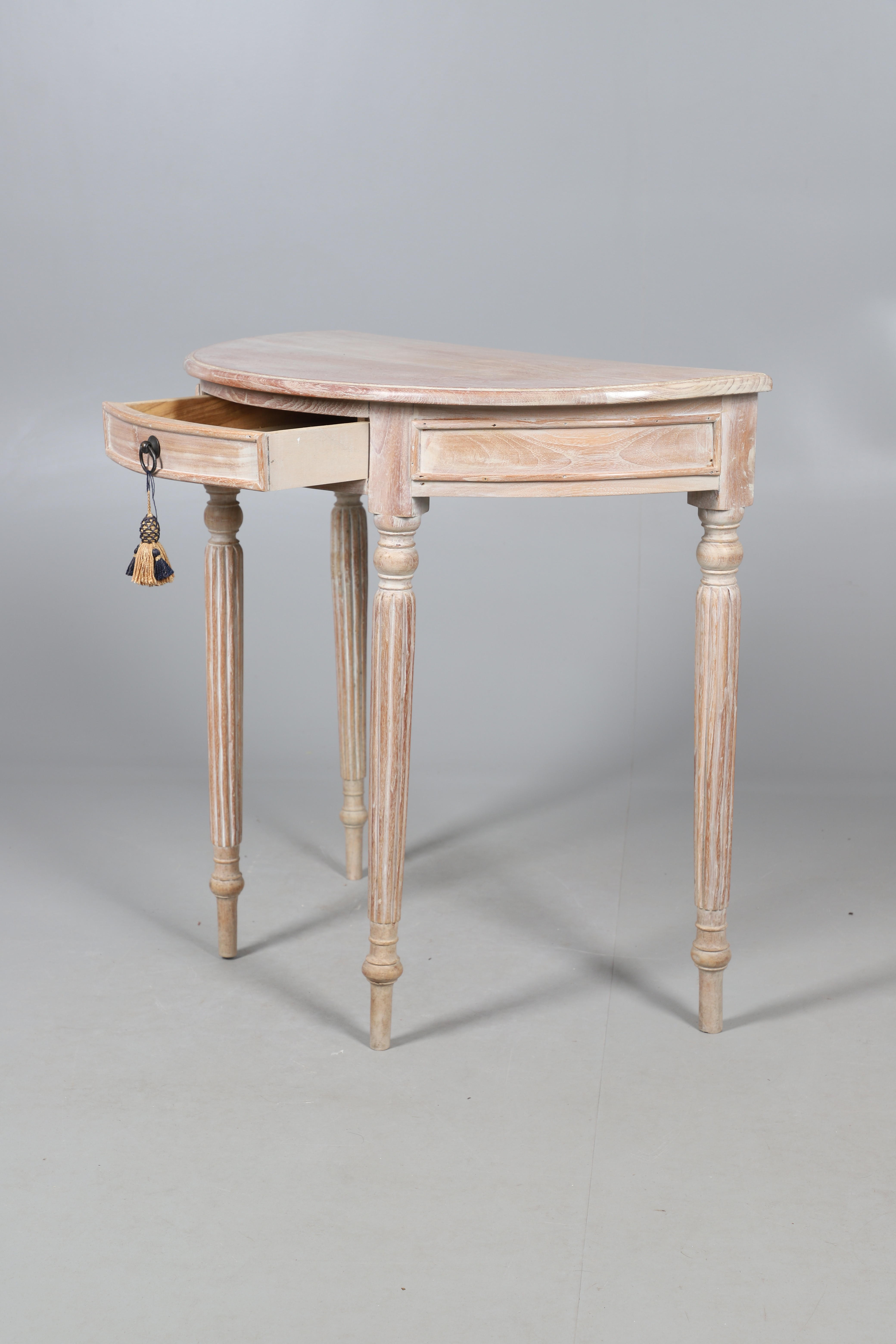 4415413. EIN HALBRUNDER FLURTISCH AUS GEKALKTEM HOLZ.