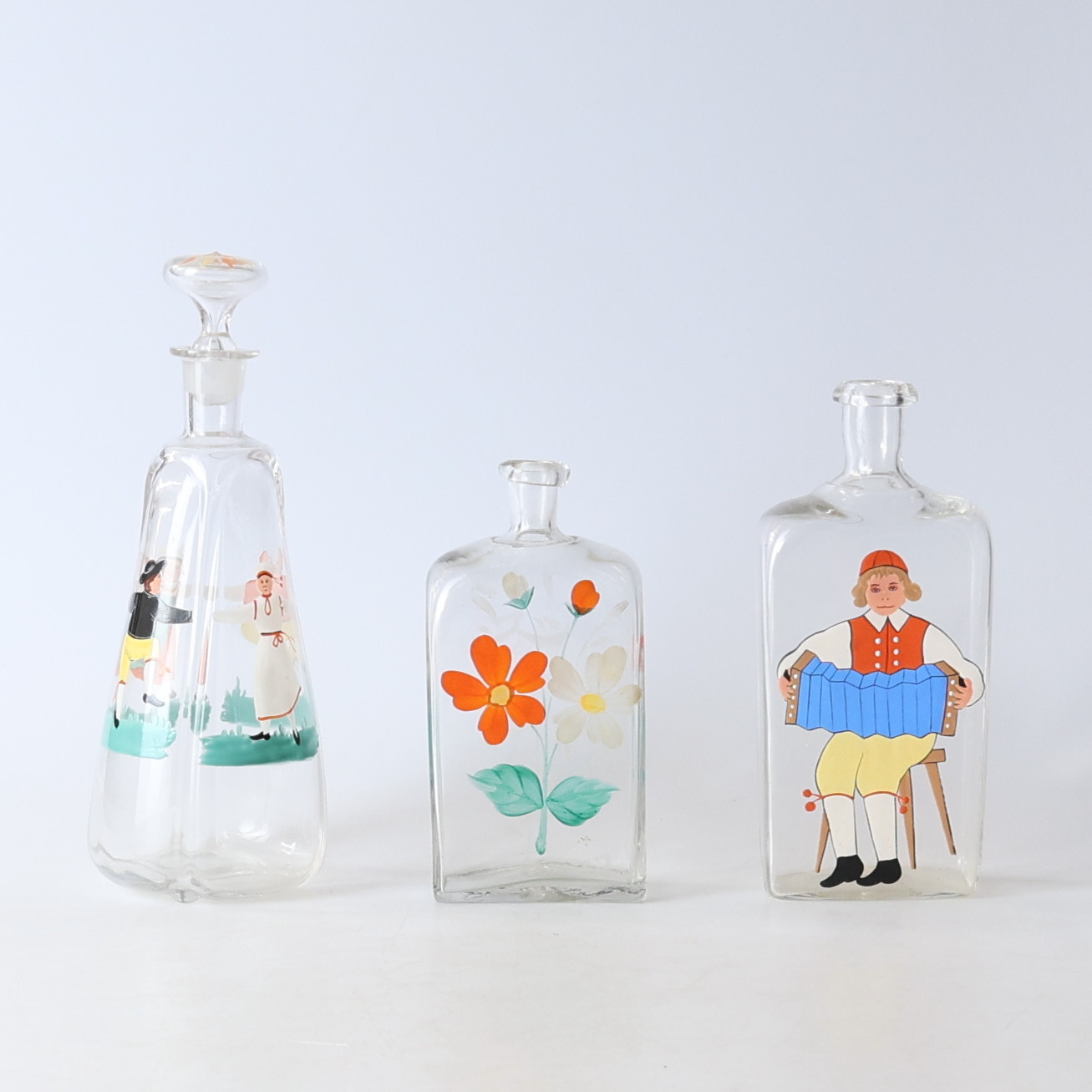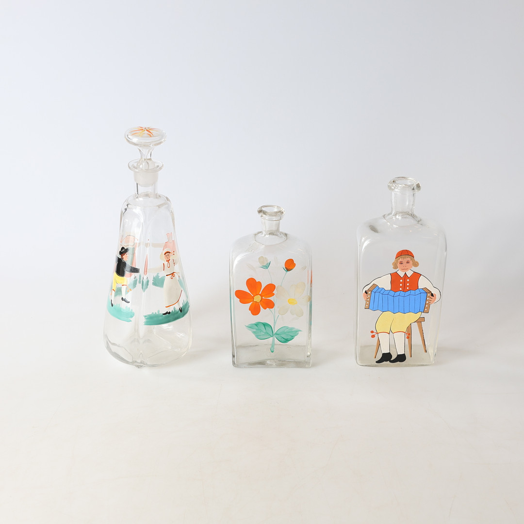 4417035. 3-teilige Glaskaraffe und Flaschen, 19./20. Jahrhundert.