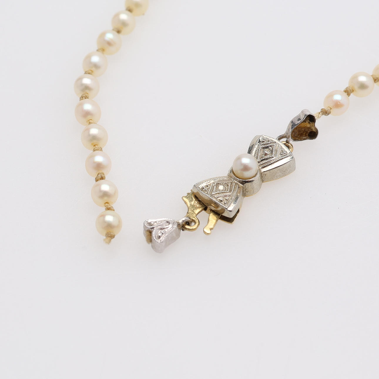 MESSBARE PERLENKETTE, VERSCHLUSS AUS 18 KARAT GOLD.