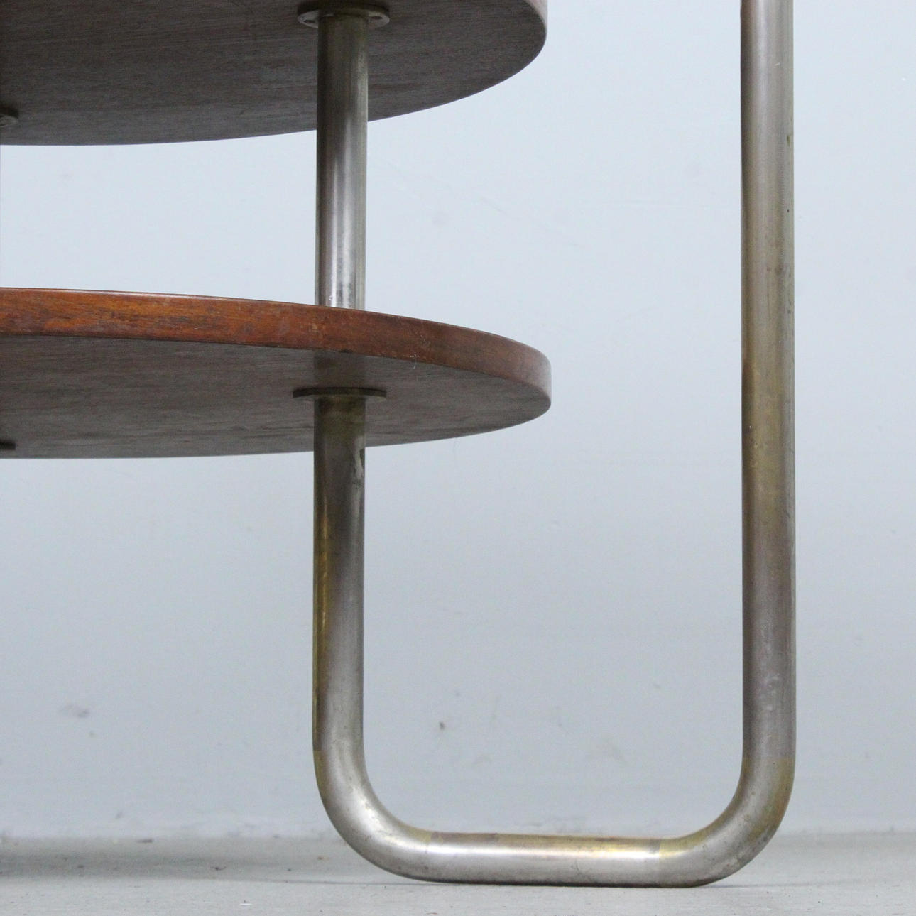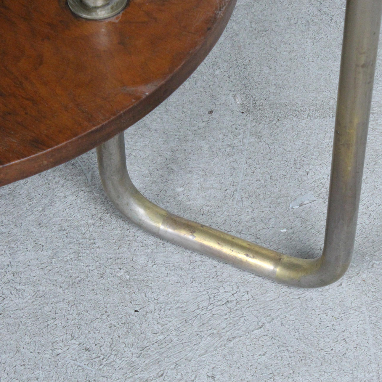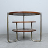 Bauhaus Couchtisch / Coffeetable, Konstruktion aus Holz und Metall, Maße ca.: H. 62,5 cm, Ø 78 cm.