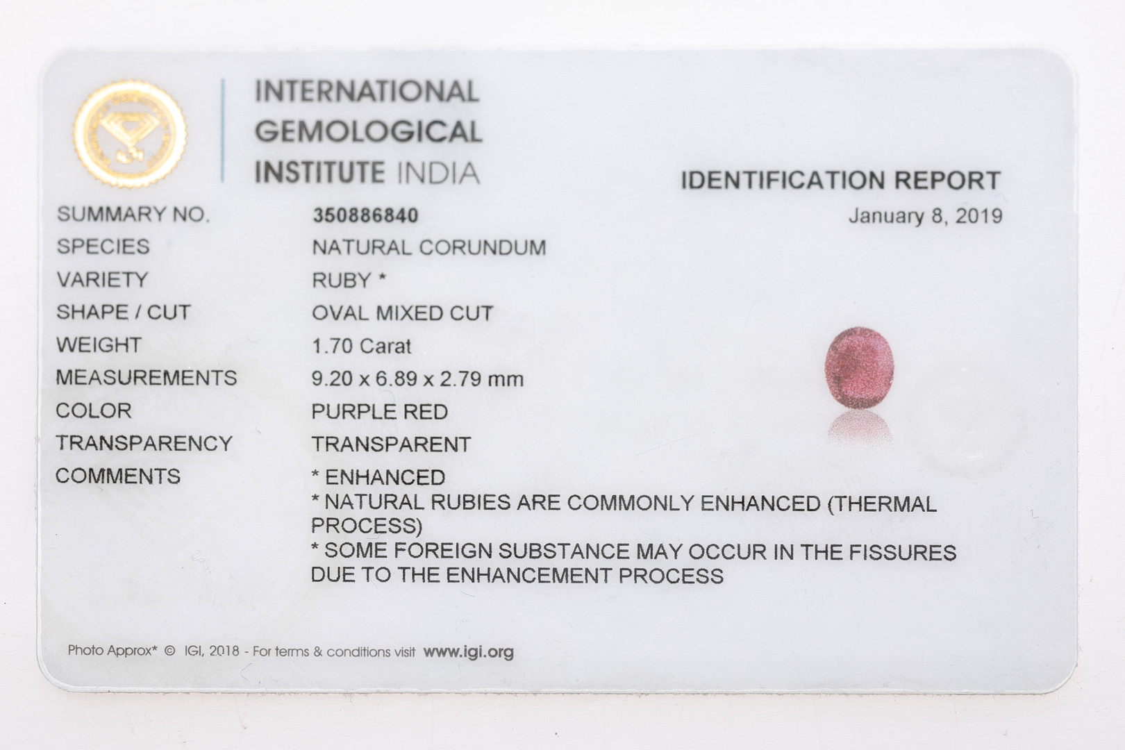 4419990. Loser Rubin ca. 1.70 ct.