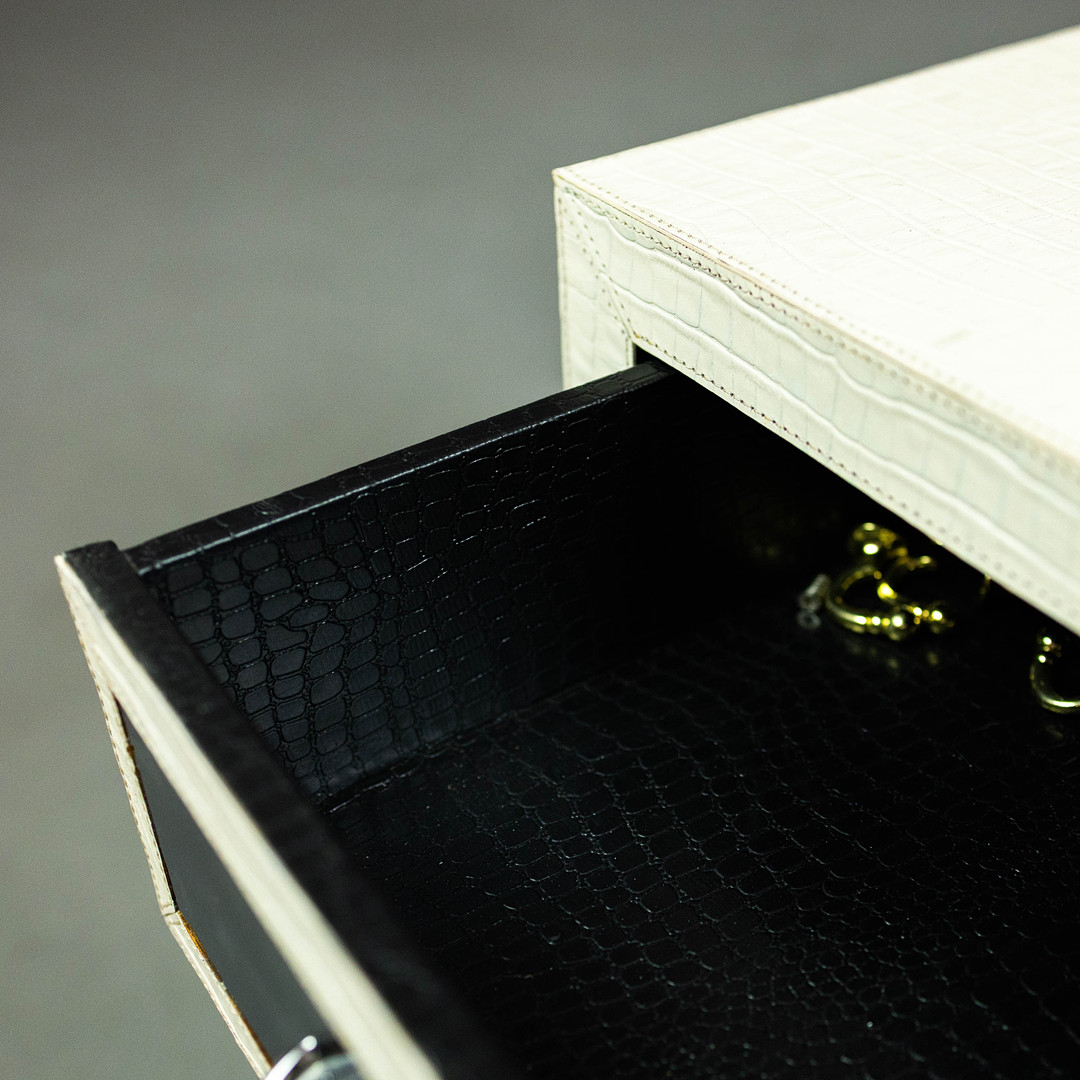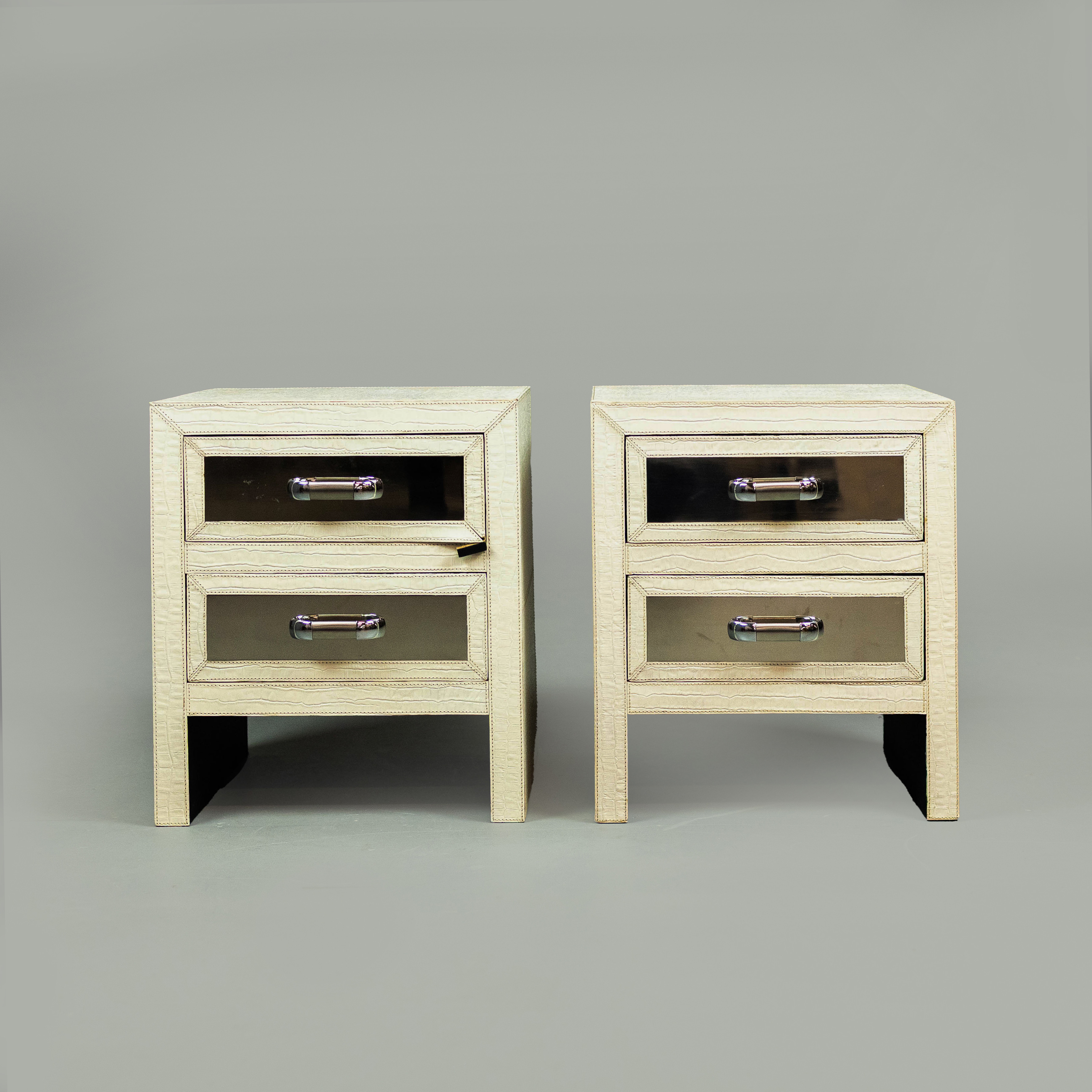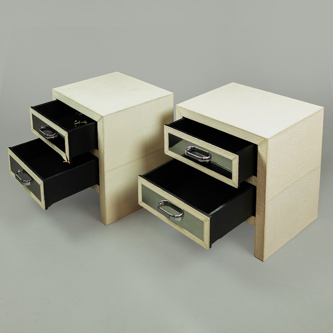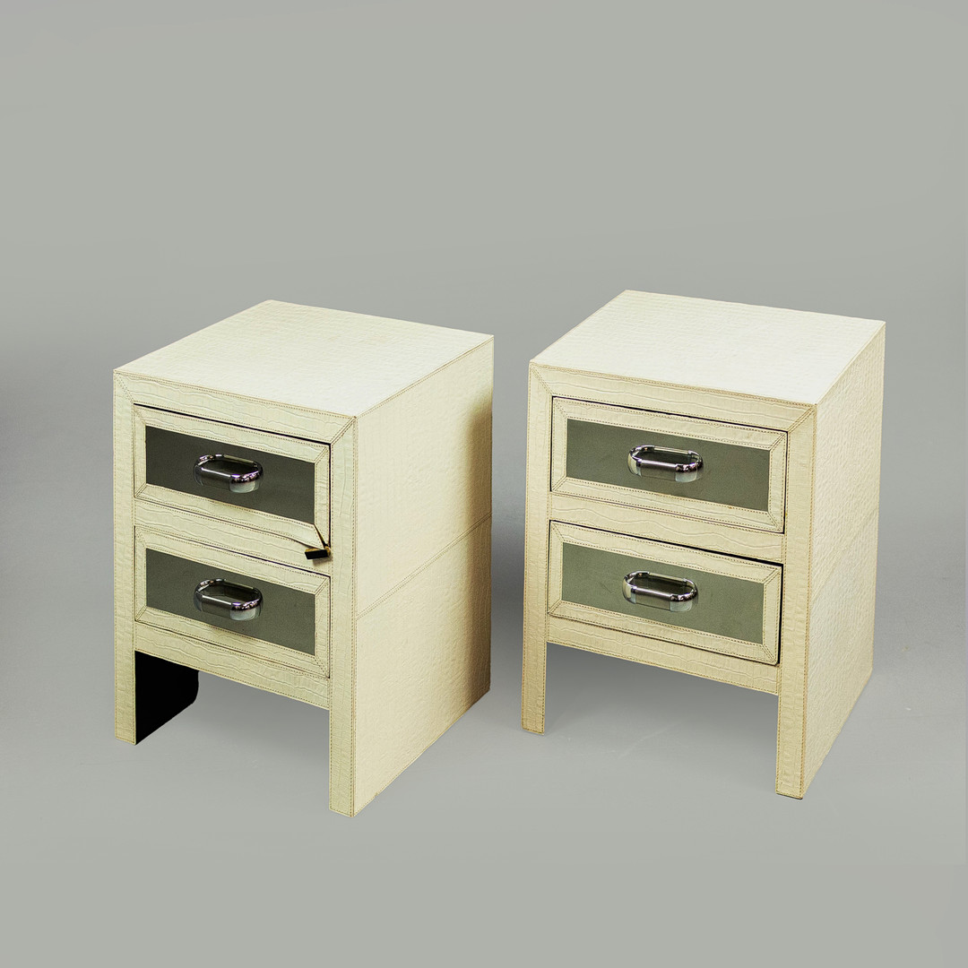 4420050. GEPOLSTERTE SEITENTRUHEN IN KROKODILOPTIK, EIN PAAR.