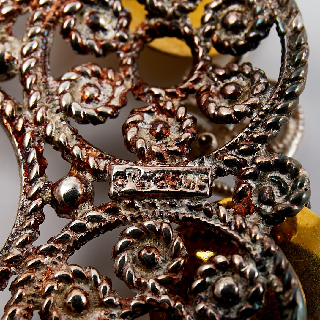 MODESCHMUCK, 2 Stück, Brosche und Ohrringe, Silber, Filigran.