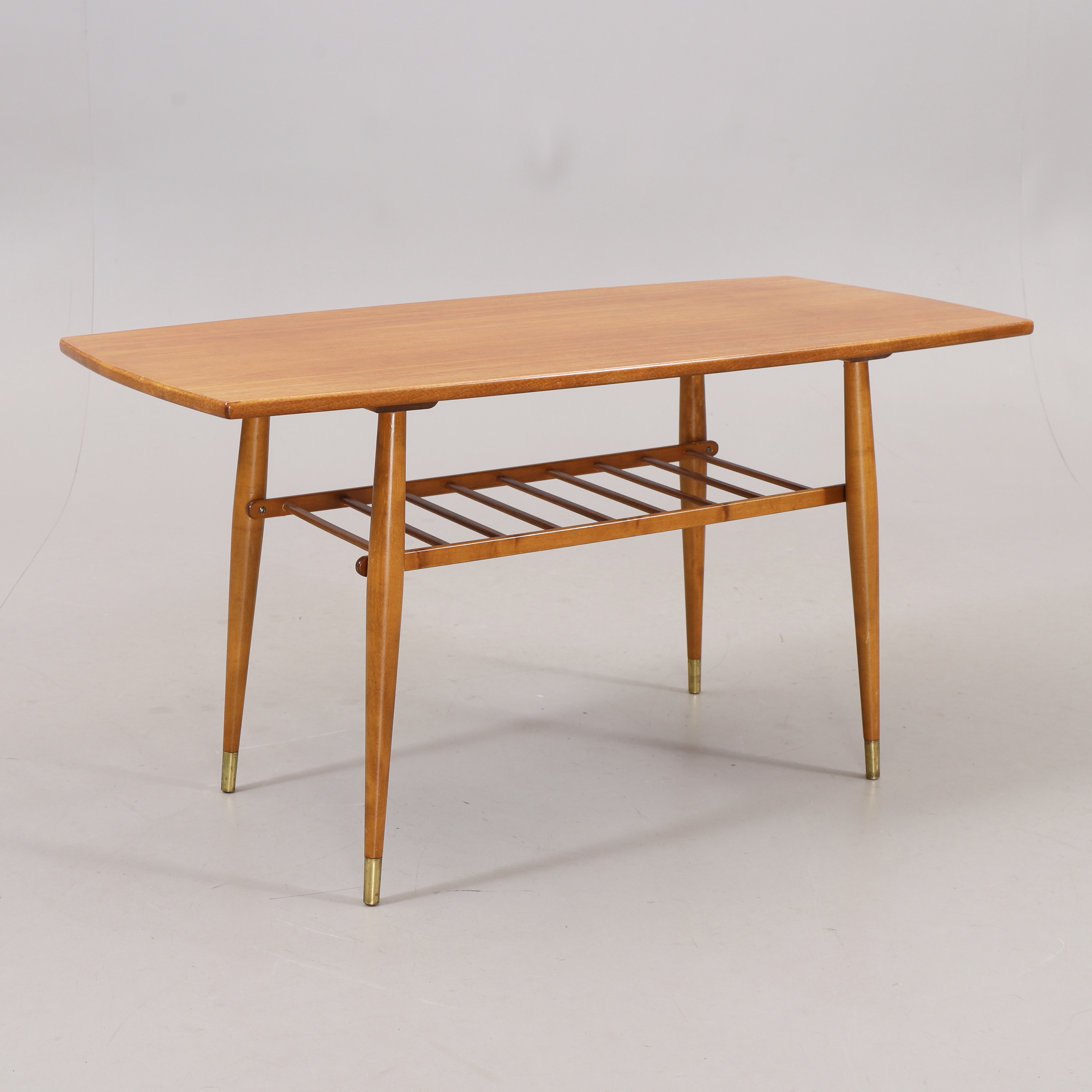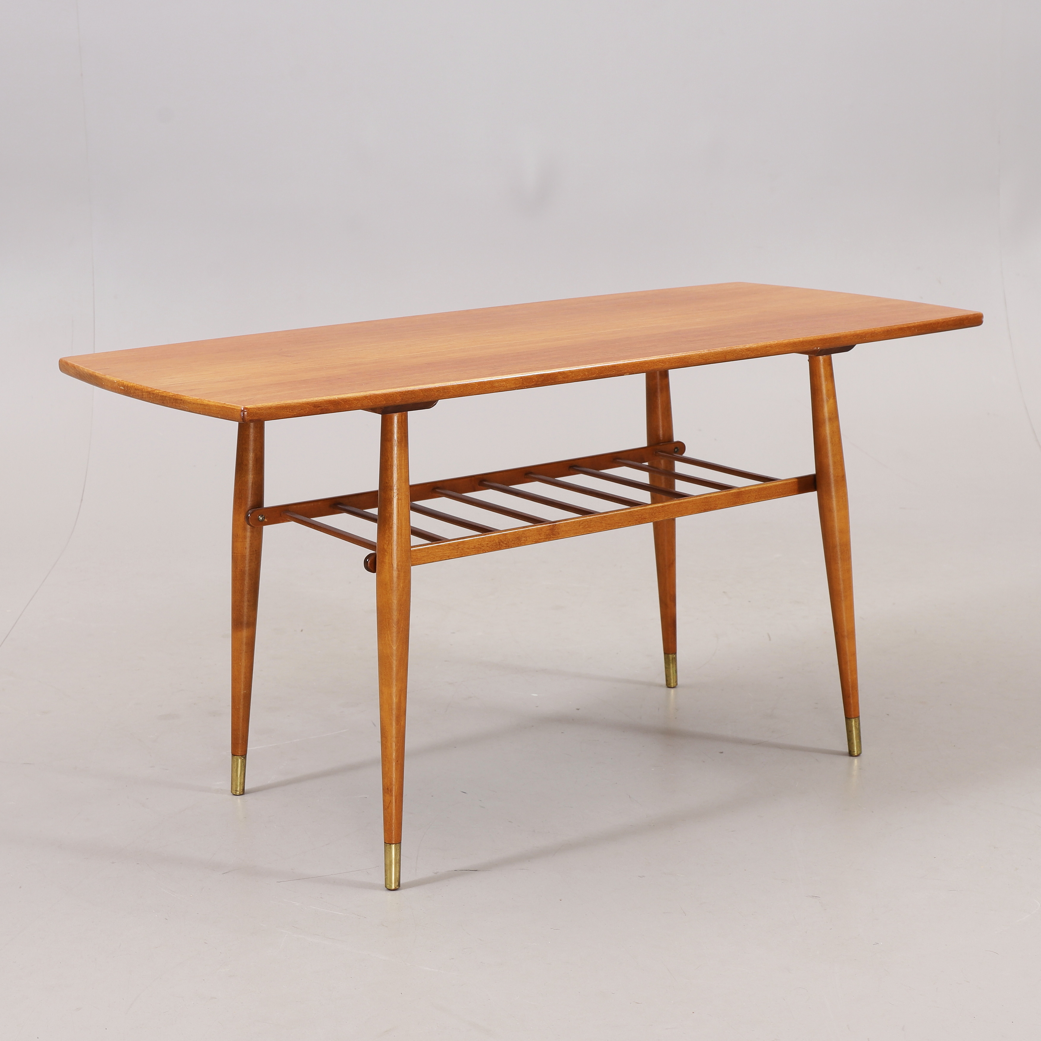 4423069. COUCHTISCH MIT UNTERREGAL, Teakholz, 1960er.