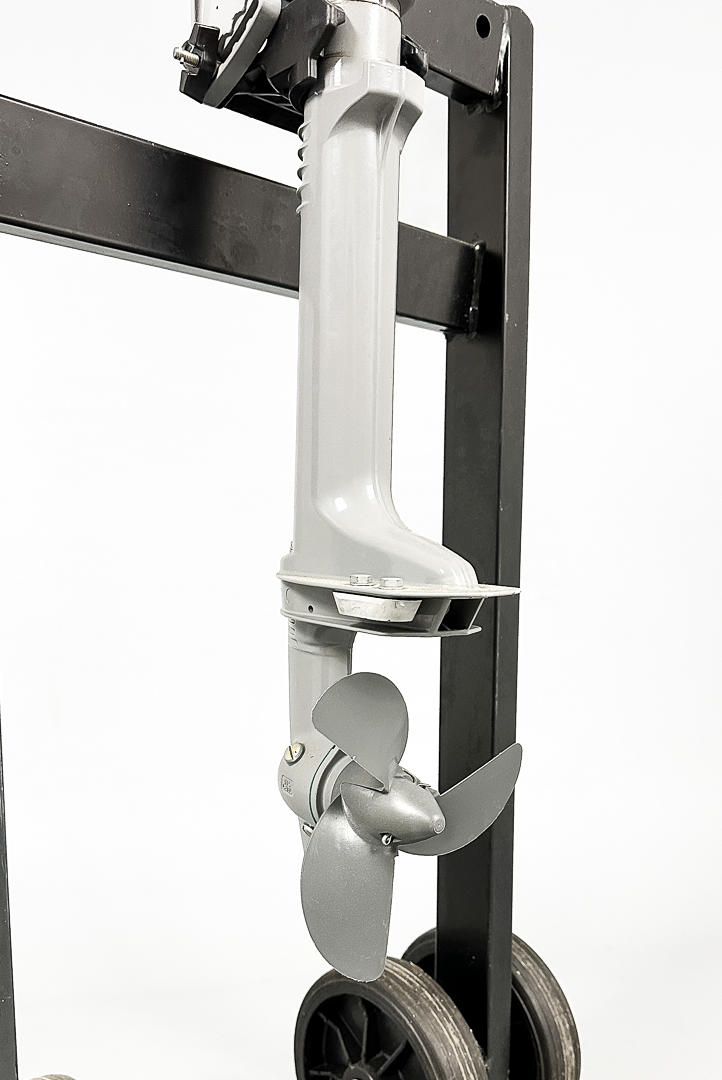 FRISCH SERVIERT. Ein Transportanhänger für Motoren bis 150 kg ist im Lieferumfang enthalten.
