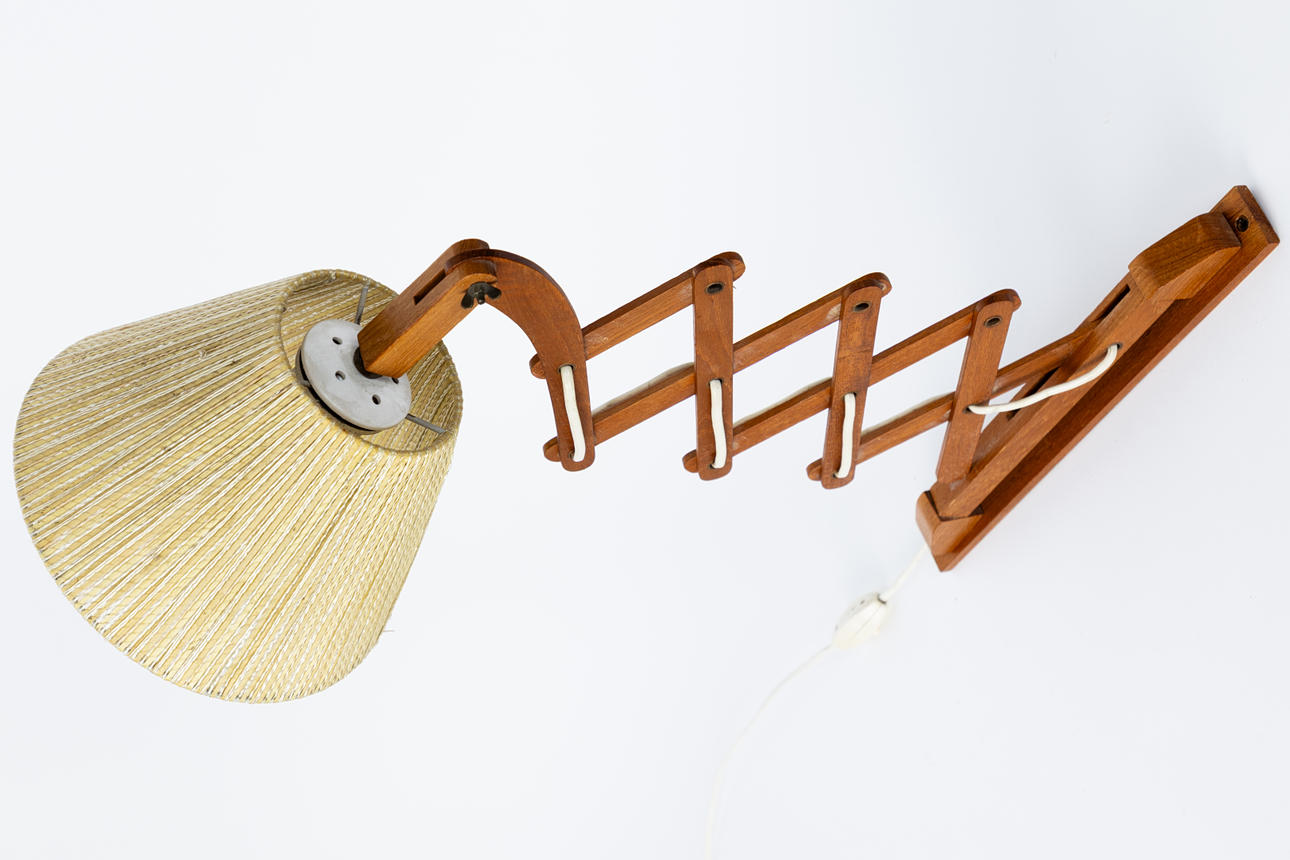 Wandleuchte / Scherenleuchte in Teak, 2. Hälfte 20. Jh.
