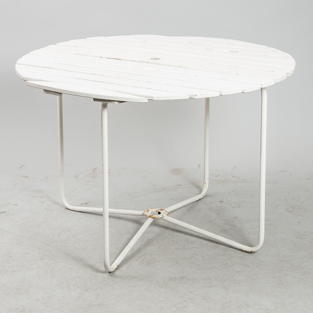 442365. GARTENTISCH, Holz/geschmiedet, Mitte 20. Jahrhundert.