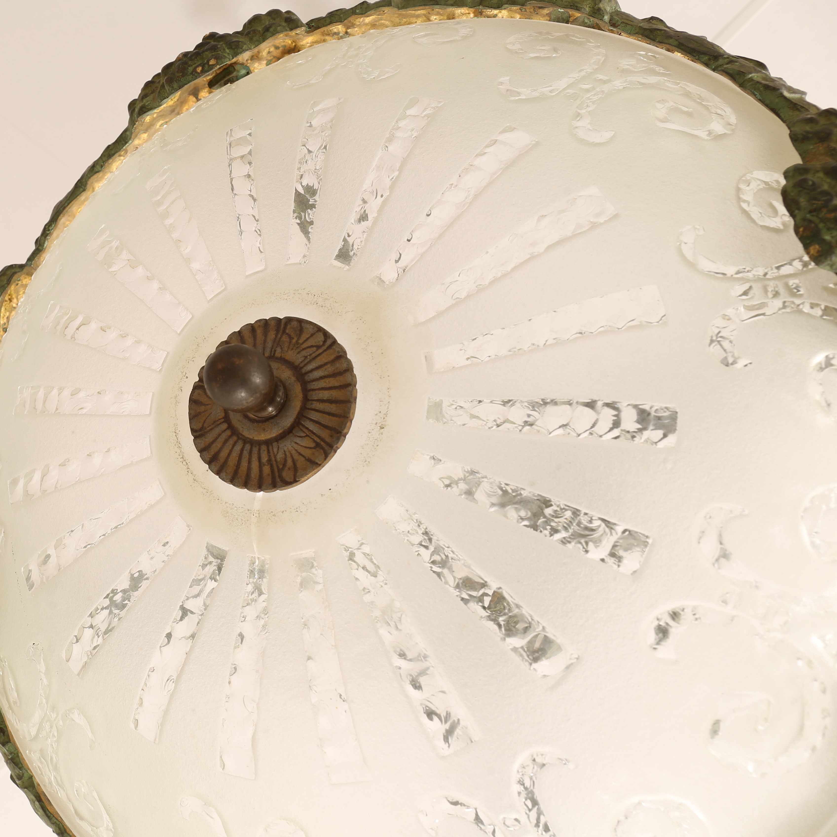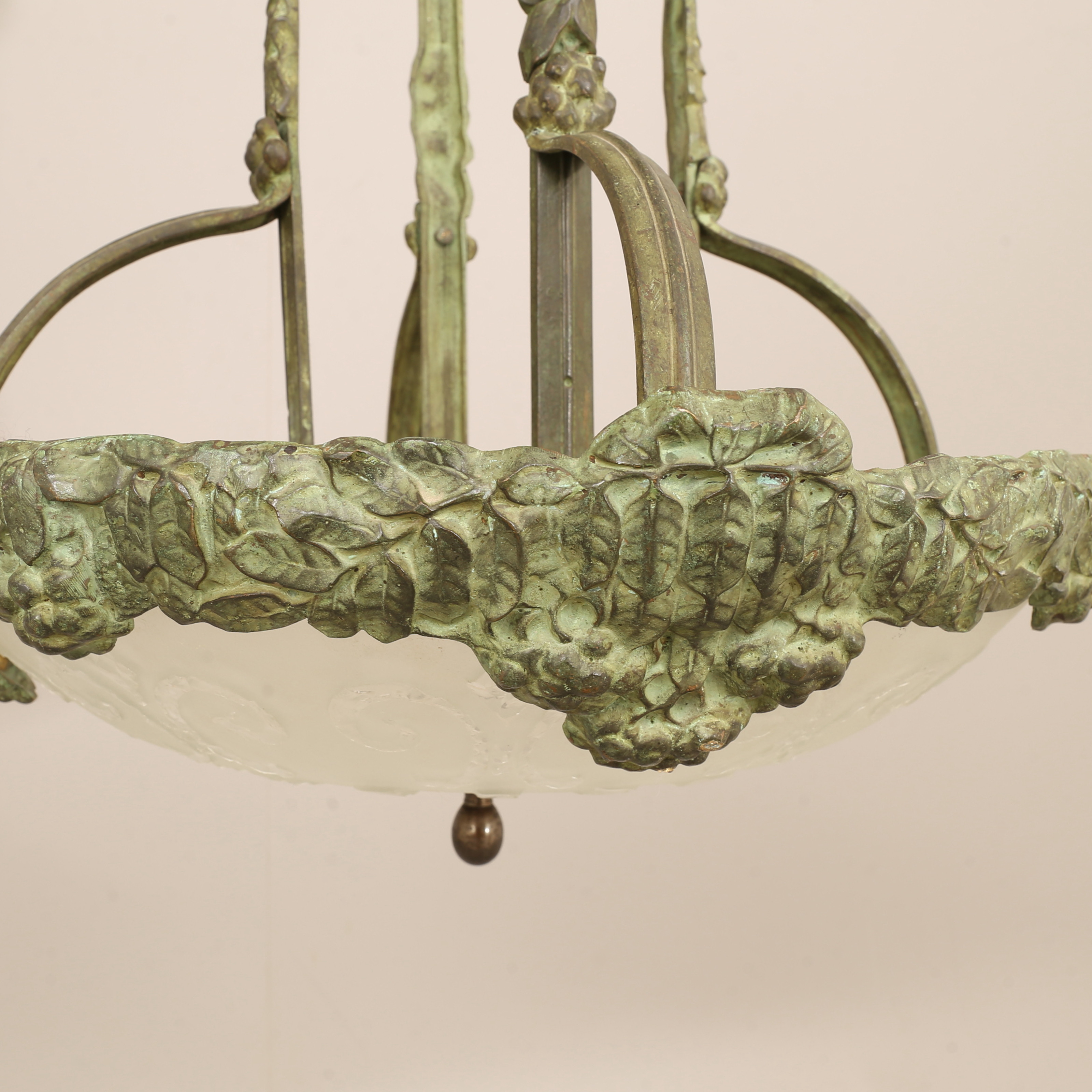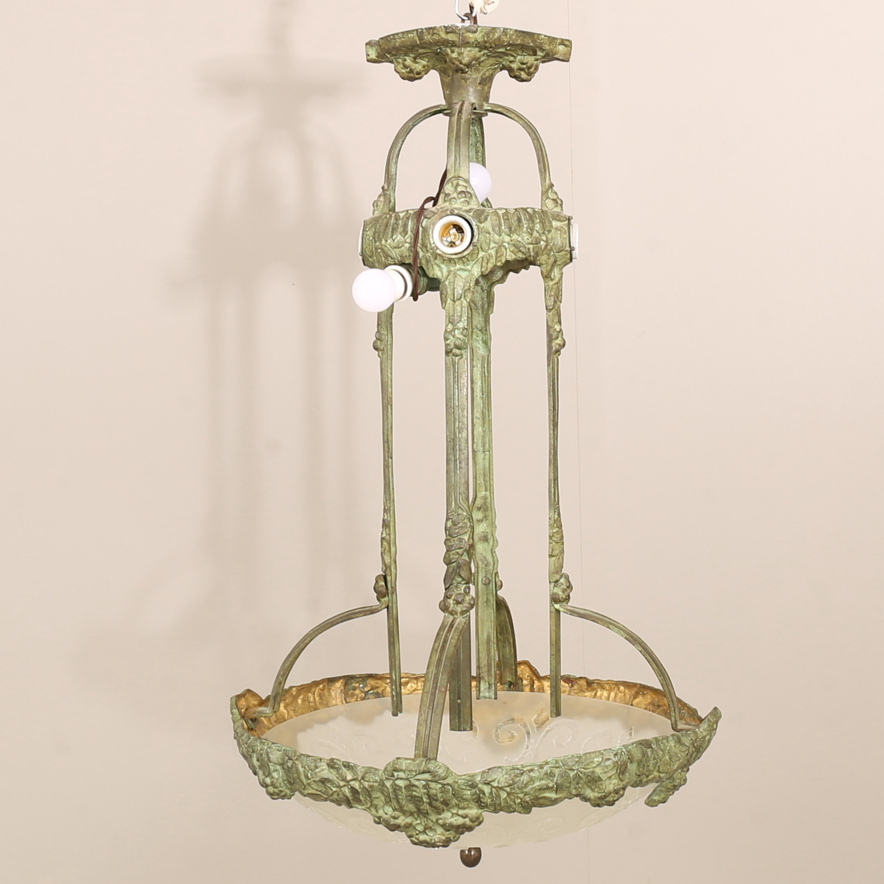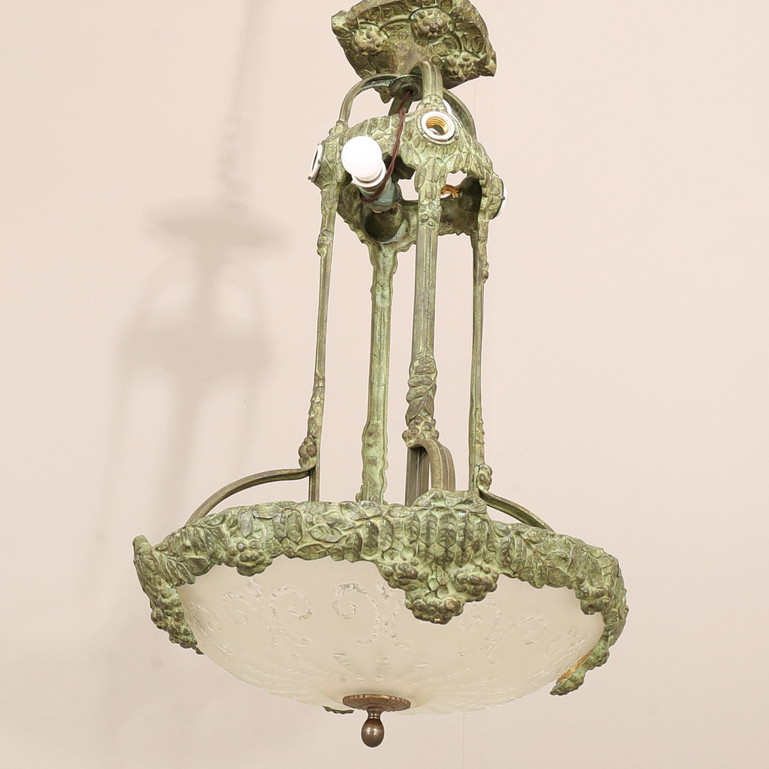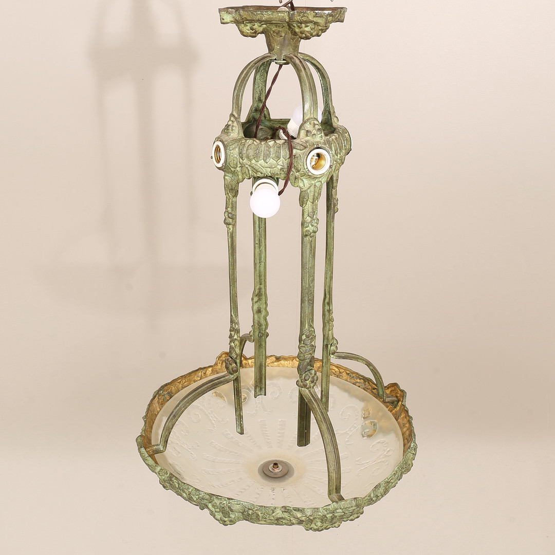 4423782. Deckenleuchte, wohl Alice Nordin, Böhlmarks, in Bronze gegossen, frühes 20. Jahrhundert.