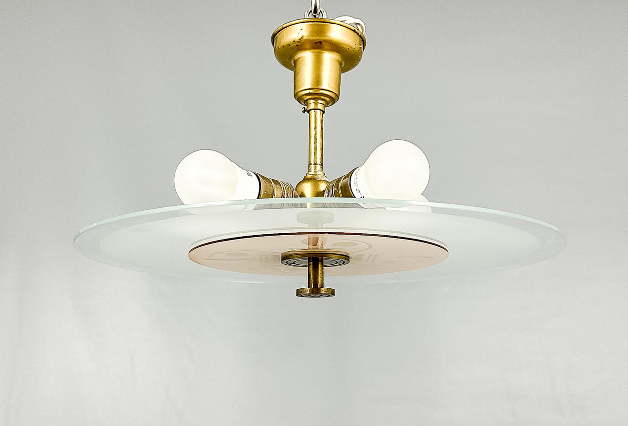 4423827. Deckenlampe aus Glas, Messingrahmen, 20. Jahrhundert.