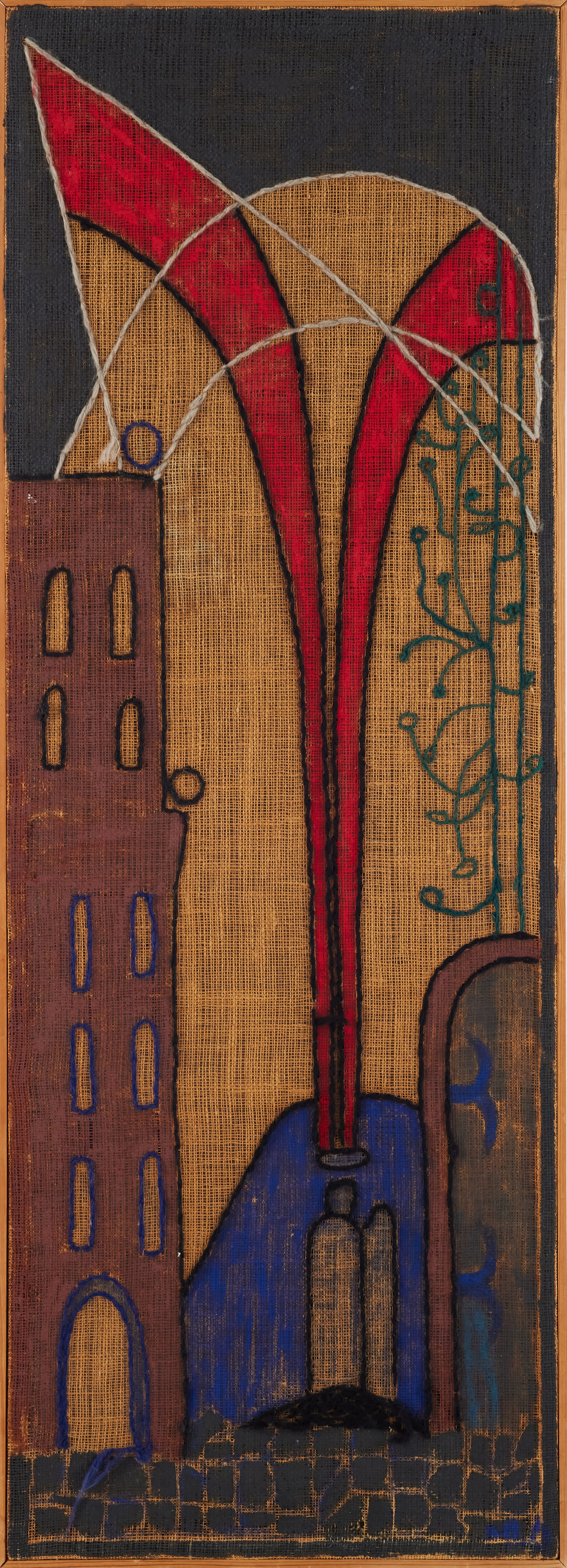 4424594. OIDENTIFIERAD KONSTNÄR. Wandtextil, 20. Jahrhundert, undeutlich signiert.