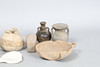 Inklusive einer Öllampe, einem Webstuhl, einem Gefäß mit zwei Henkeln, Gläsern usw. Das höchste Stück ist 8 cm hoch. (Menge).