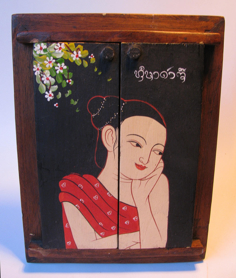 AUFKLAPPBARER BILDERRAHMEN, mit asiatischem Motiv.